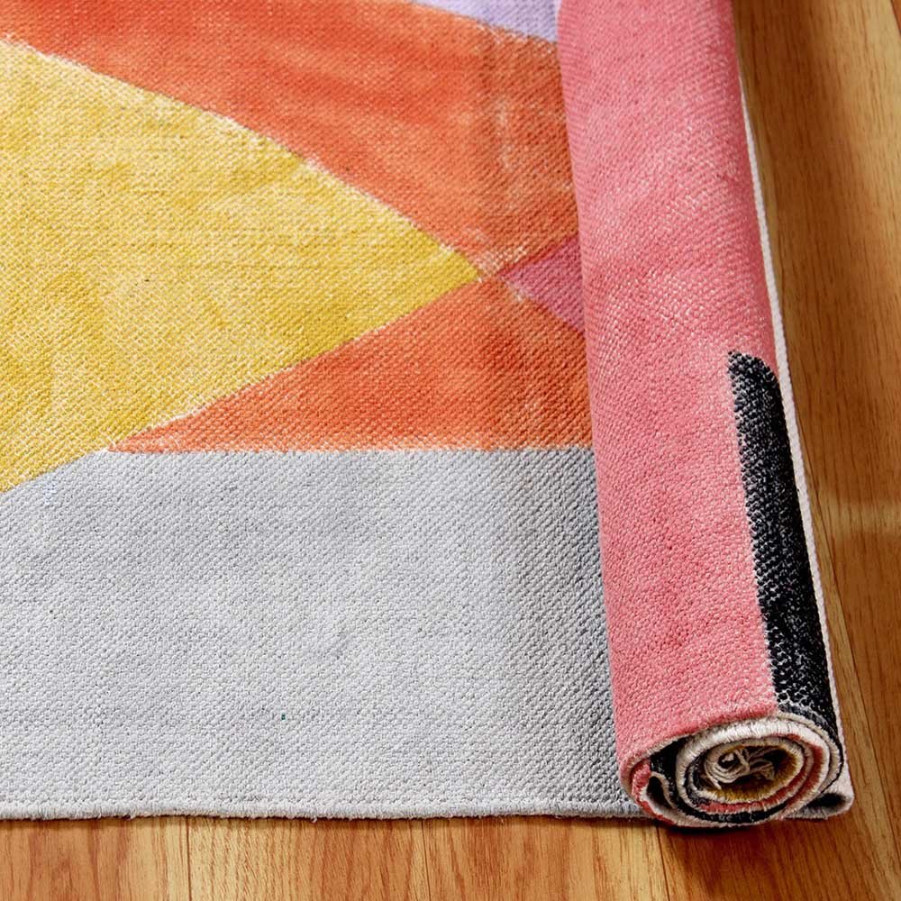 This is a beautiful handmade Cotton kilim rug weaved on Indian looms stamped with natural vegetable-dyes using hand-made wooden blocks achieving the perfection of block printing art of Jaipur. This is best suitable for your home office entrance, bedroom, living room, kids room, dining room, kitchen,outdoor patio, terrace, beach and garden.