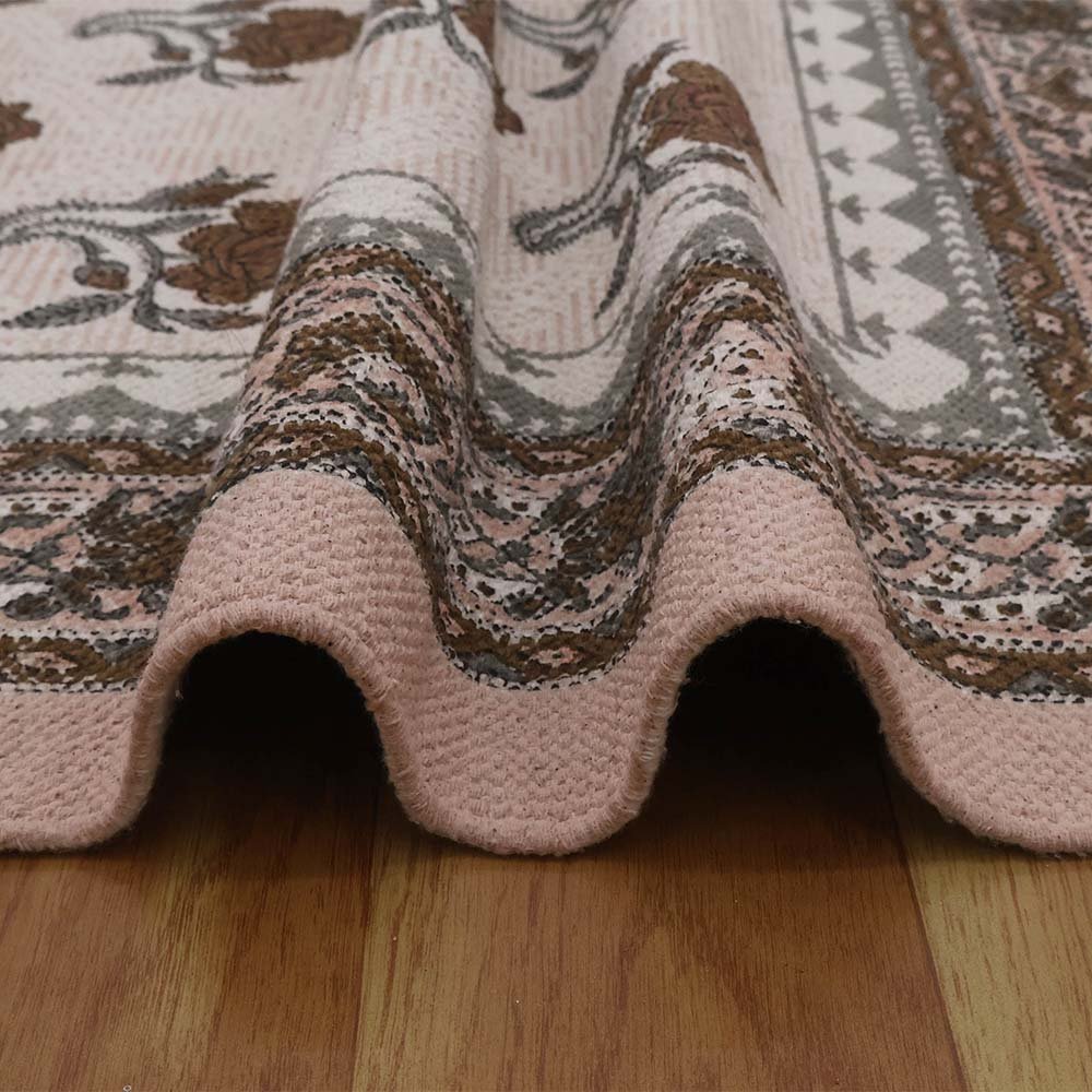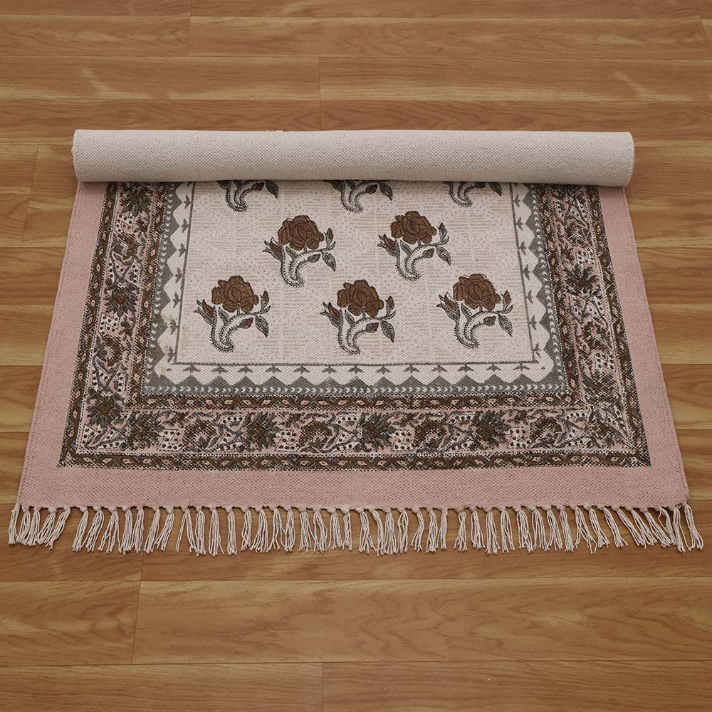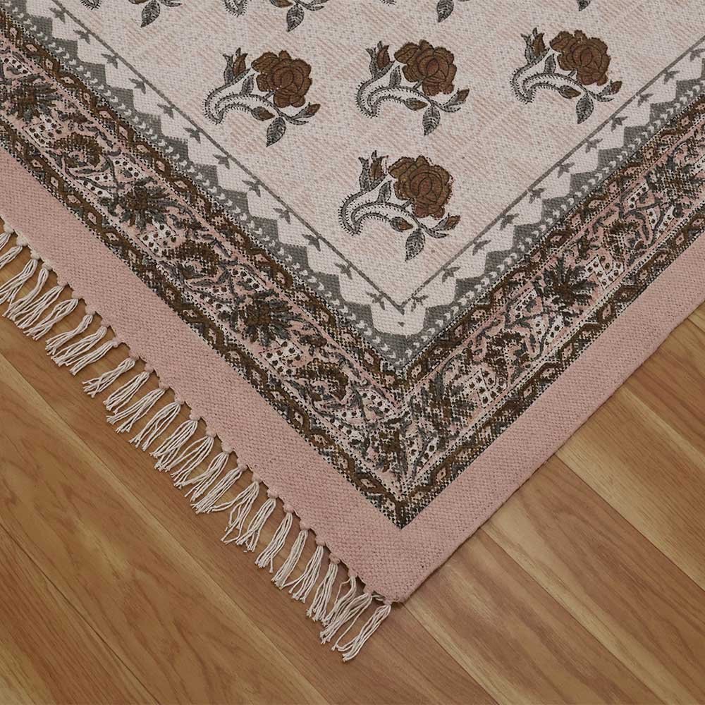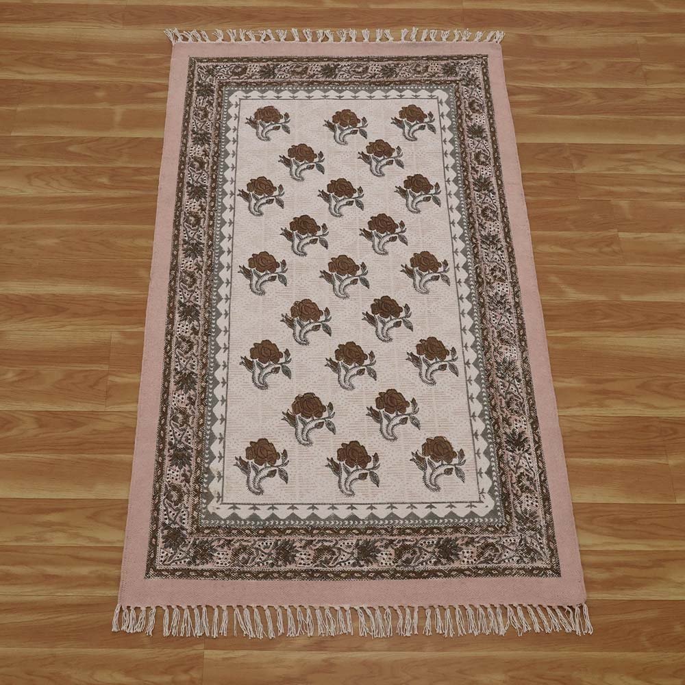This is a beautiful handmade Cotton kilim rug weaved on Indian looms stamped with natural vegetable-dyes using hand-made wooden blocks achieving the perfection of block printing art of Jaipur. This is best suitable for your home office entrance, bedroom, living room, kids room, dining room, kitchen,outdoor patio, terrace, beach and garden.
