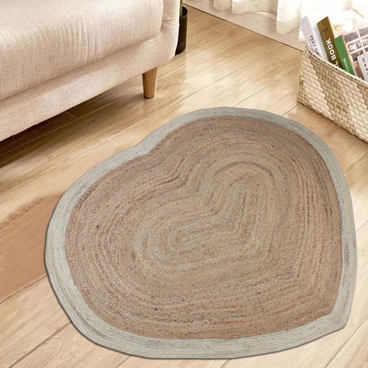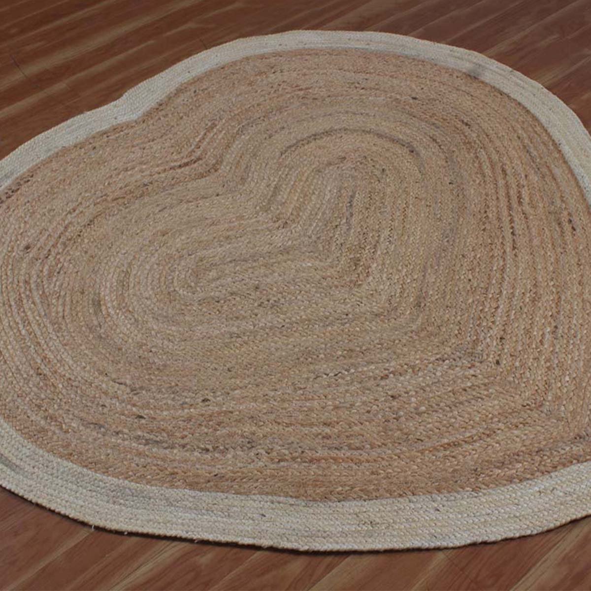 Handmade Heart Shape Beige Jute Indoor Area Rug
