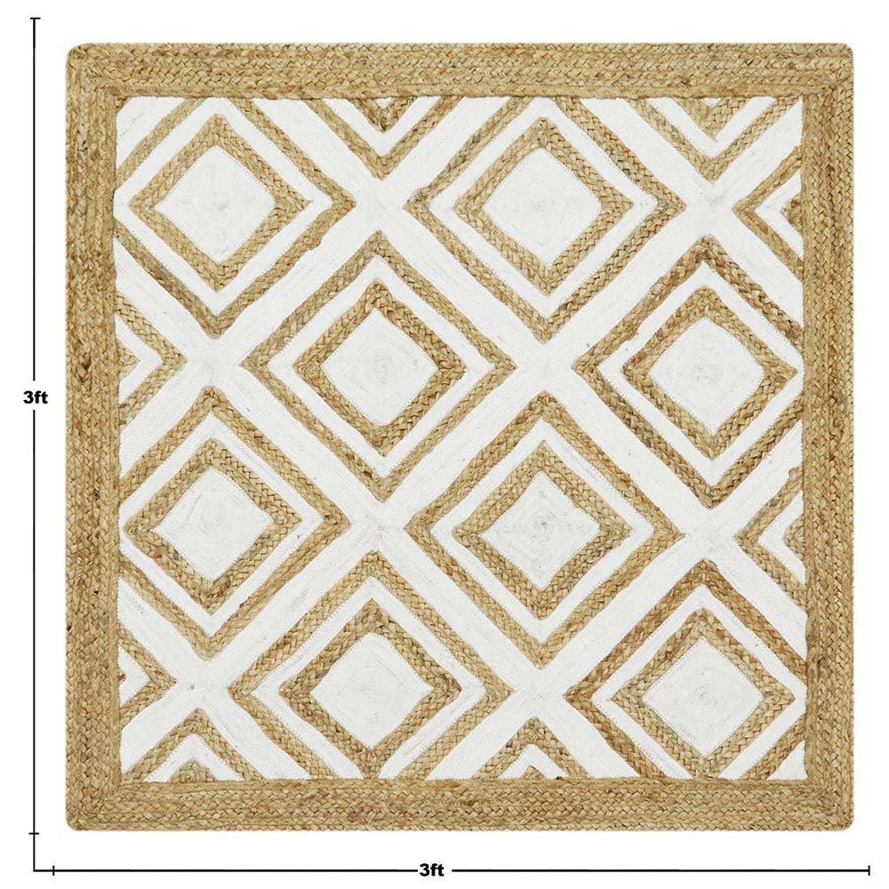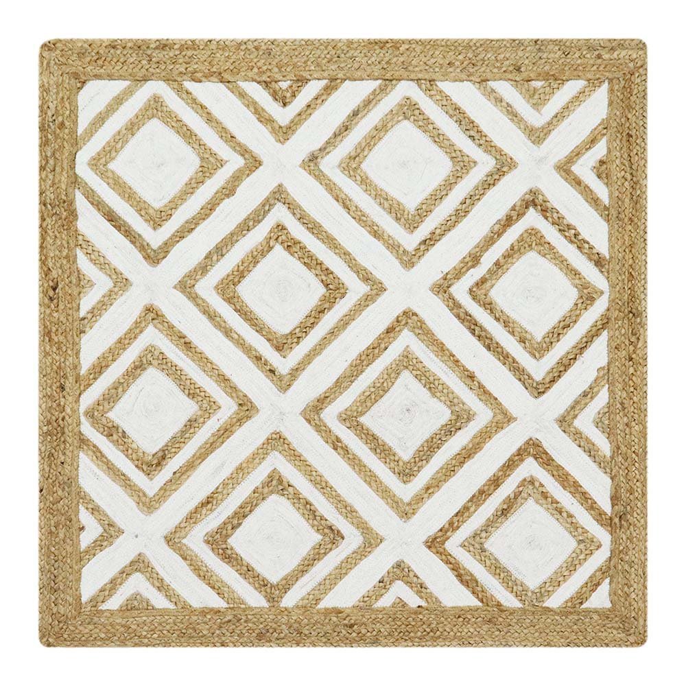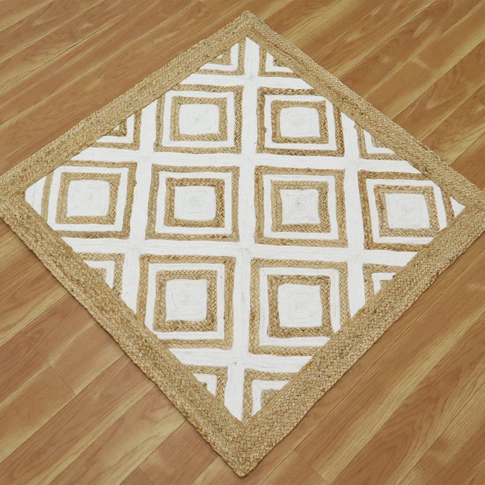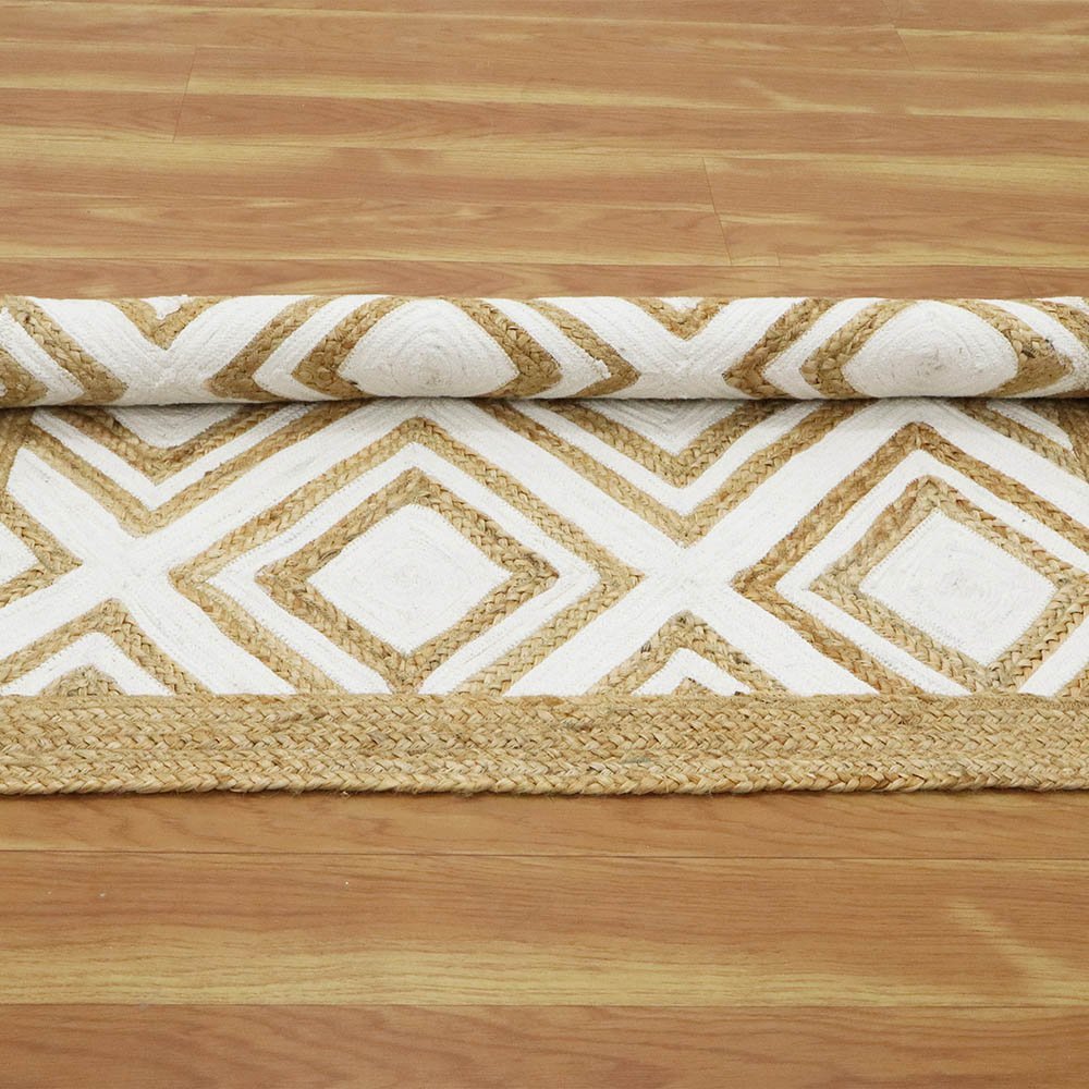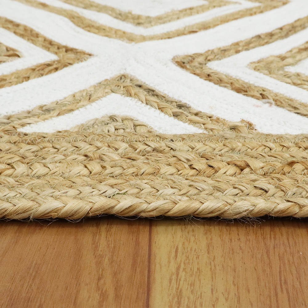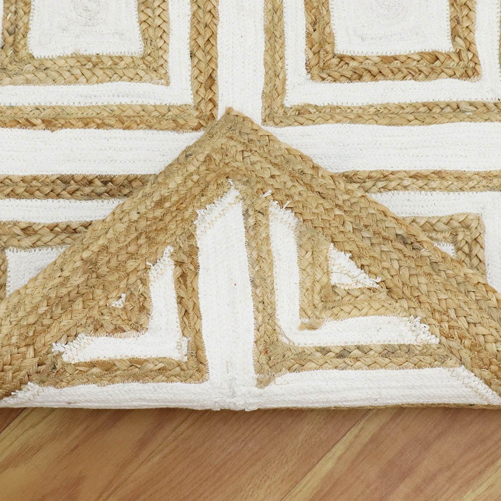 Handmade Jute White Rug Geometric Carpet