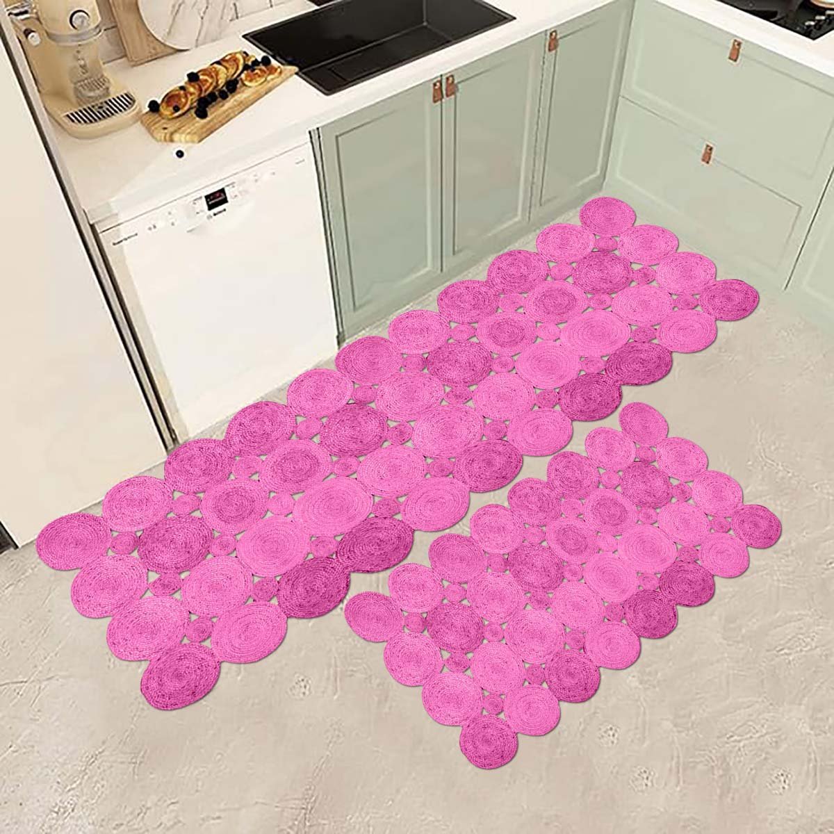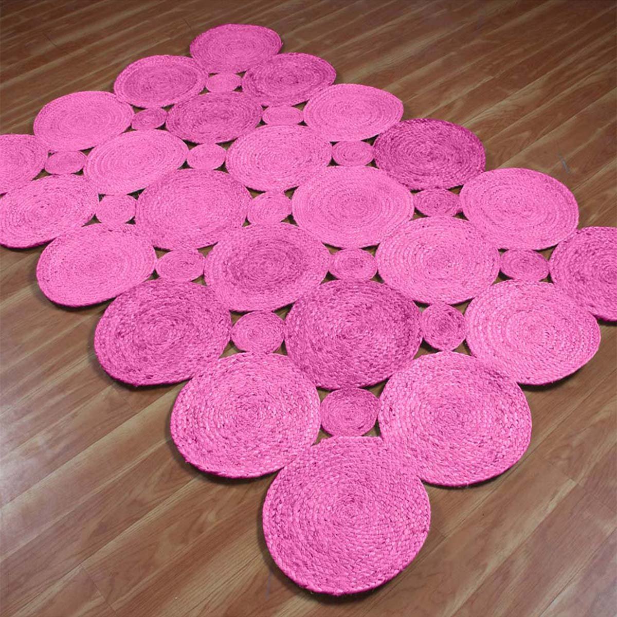 Handmade Pink Scalloped Jute Farm Area Rug