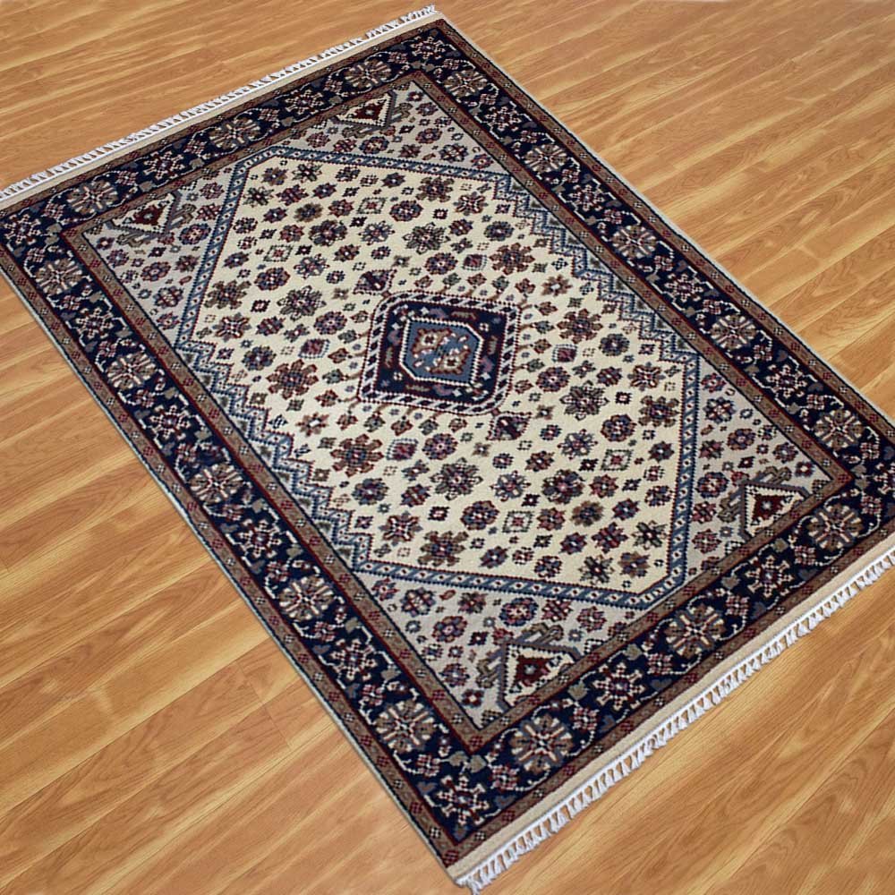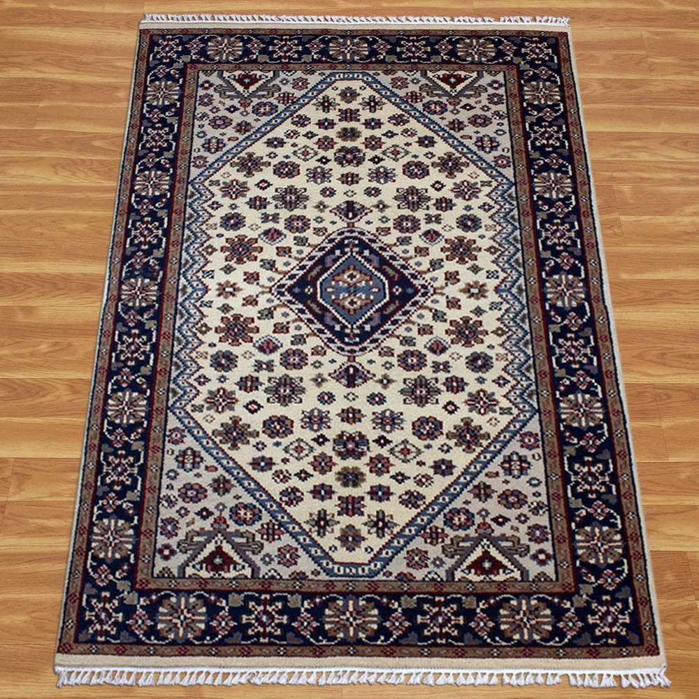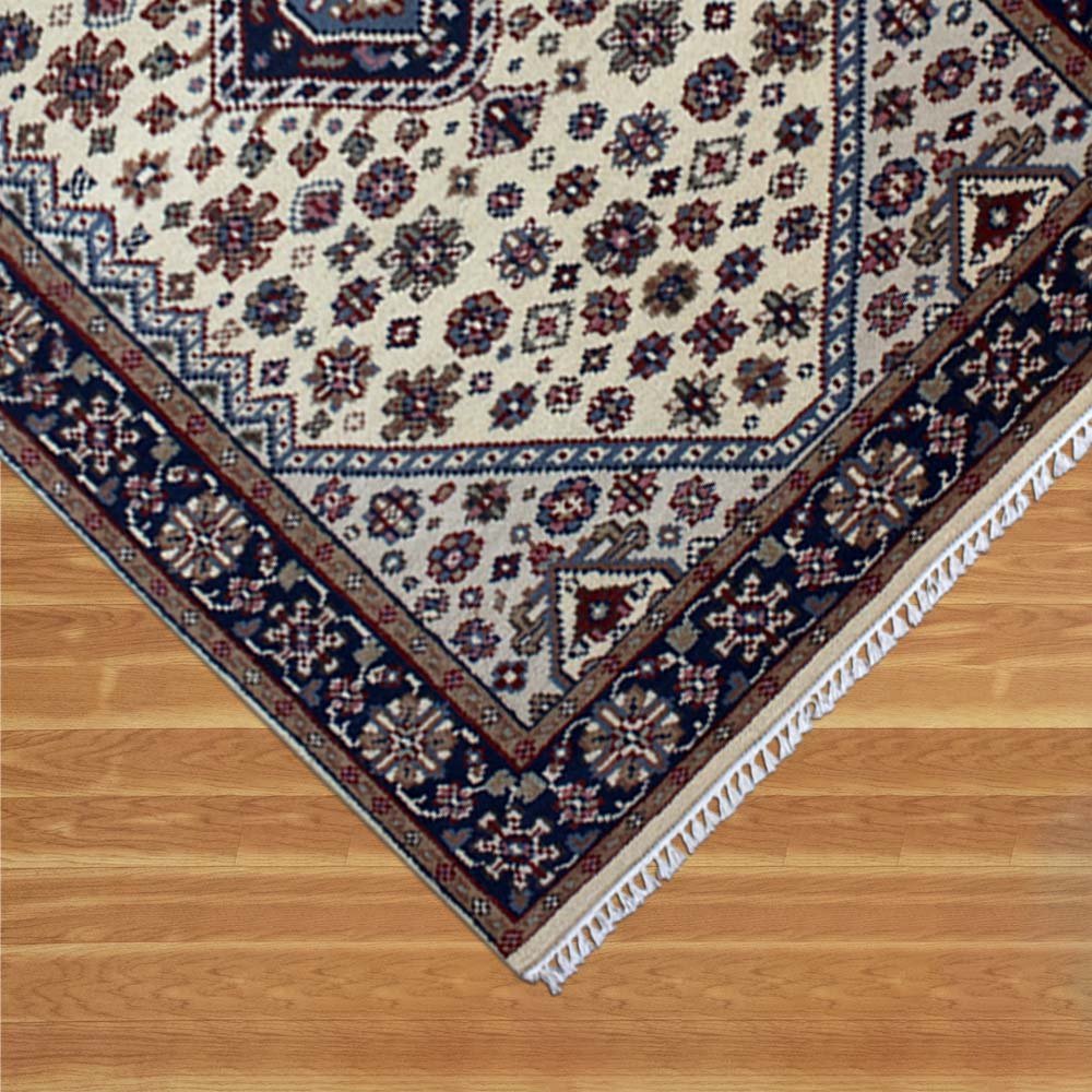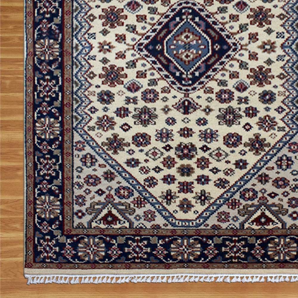 This medium-pile rug, standing at approx. 8 mm, offers a sleek and versatile addition to any space. Expertly hand-knotted at 40 knots per sq. inch, Crafted entirely from 100% pure hand knotted wool, it is hand knotted with expertise in India. Due to its handmade nature, slight variations in size and color may occur.This rug is not only soft and cozy but also a reflection of your personal style. Its super-soft texture and handmade, natural fiber construction make it a traditional art piece for your home. Every rug is meticulously crafted using 100% natural wool, from the cultivation of wool fiber to the hand-knotting process with pure, hand-spun wool yarns. The entire manufacturing process is eco-friendly, ensuring a sustainable choice for your living space.