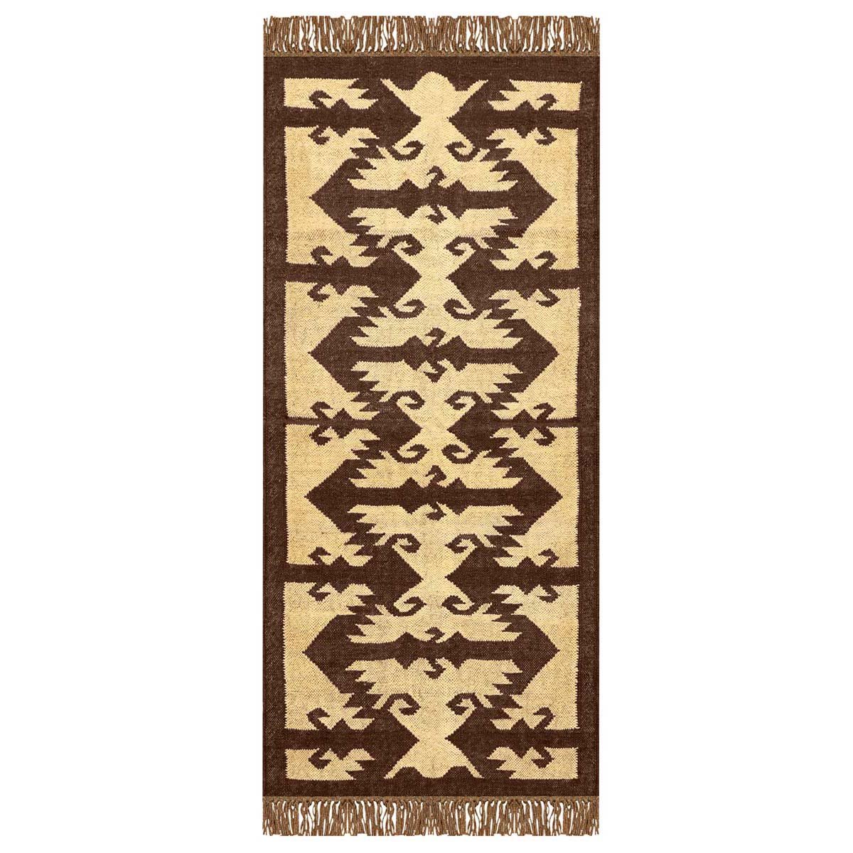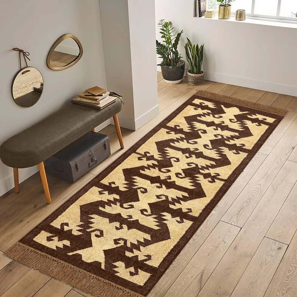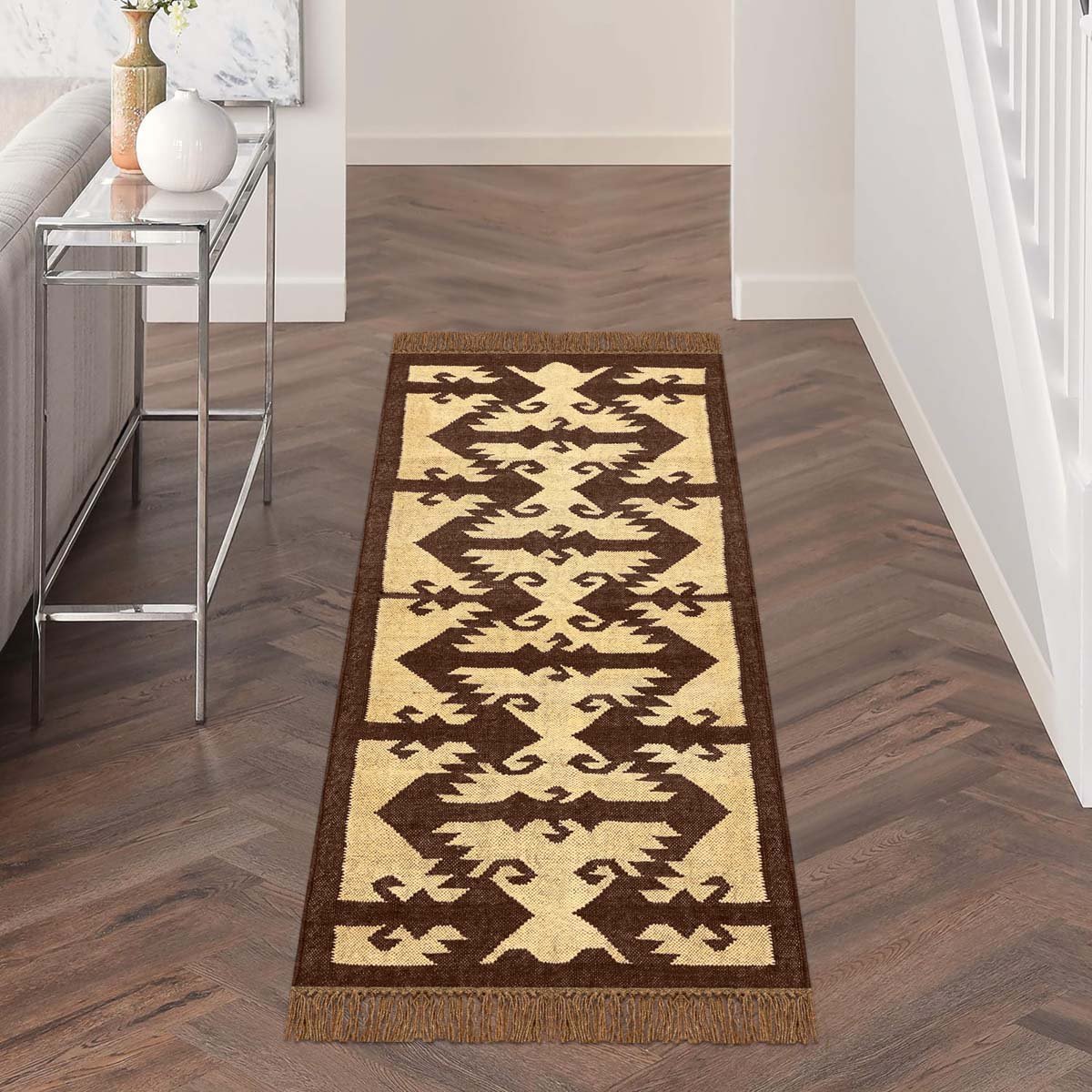 Handwoven Wool Jute Brown Kilim Runner Outdoor Area Rug