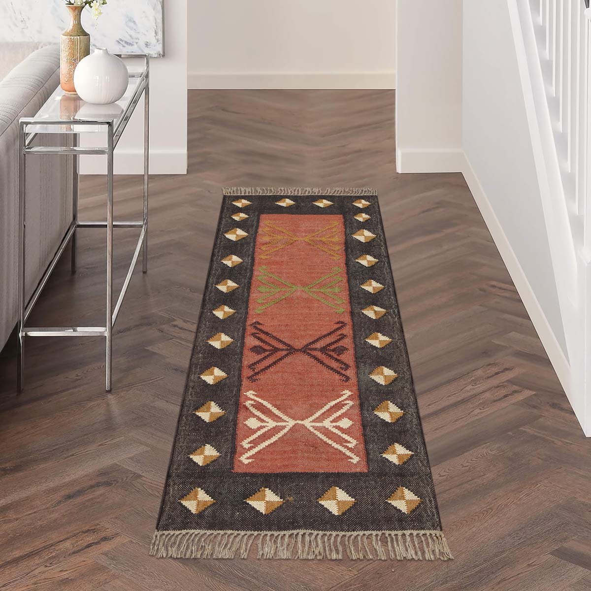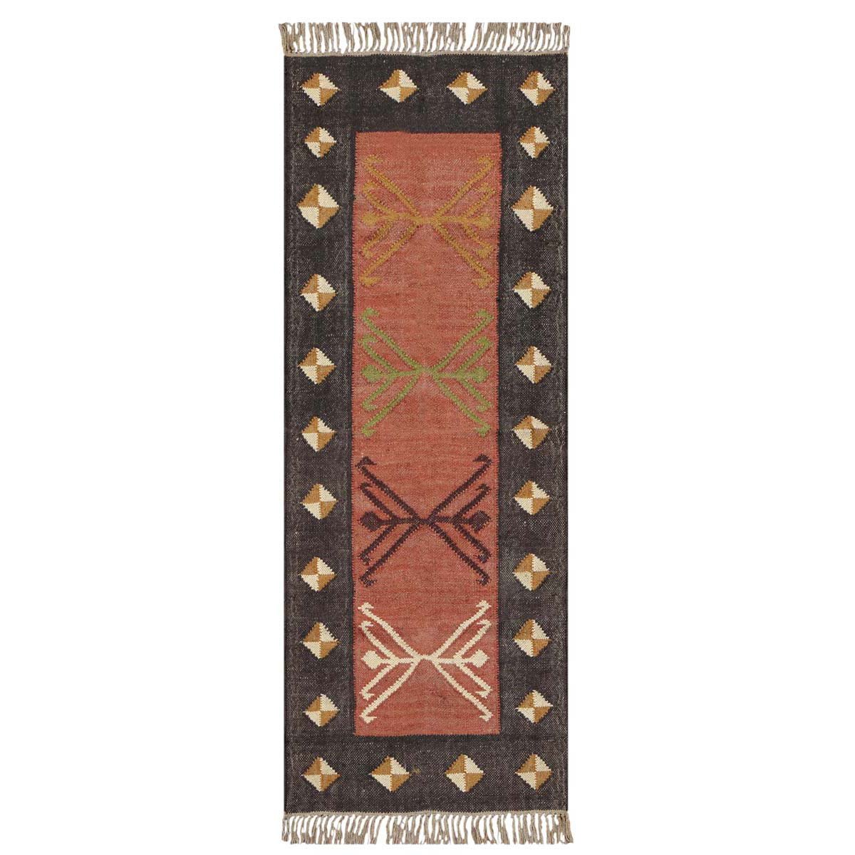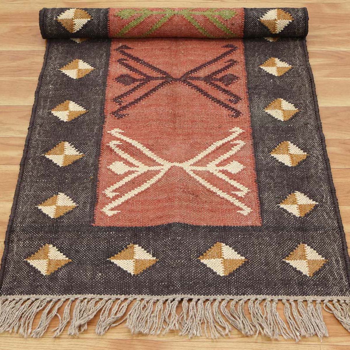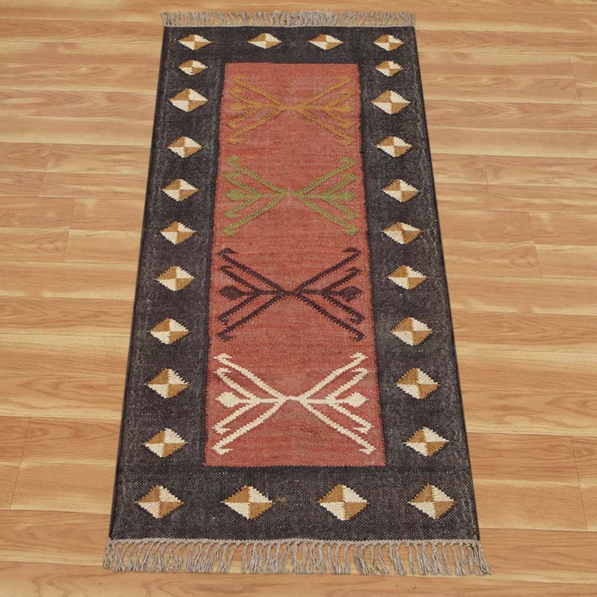 Indian Hand Woven Jute Kilim Runner Brown Kitchen Rug