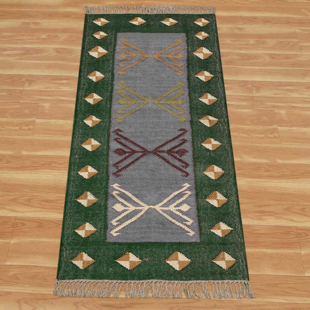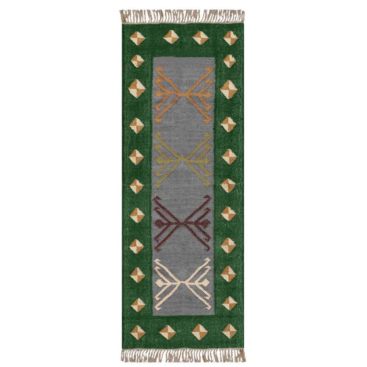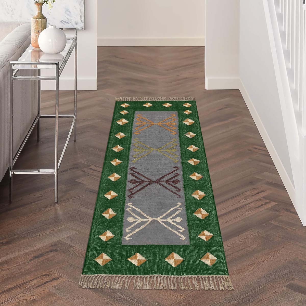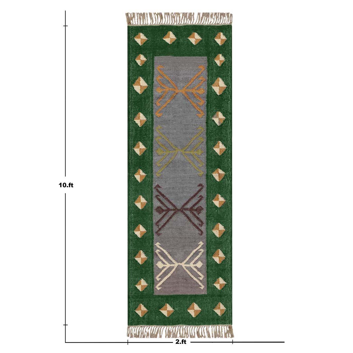 Indian Hand Woven Jute Kilim Runner Green Rug
