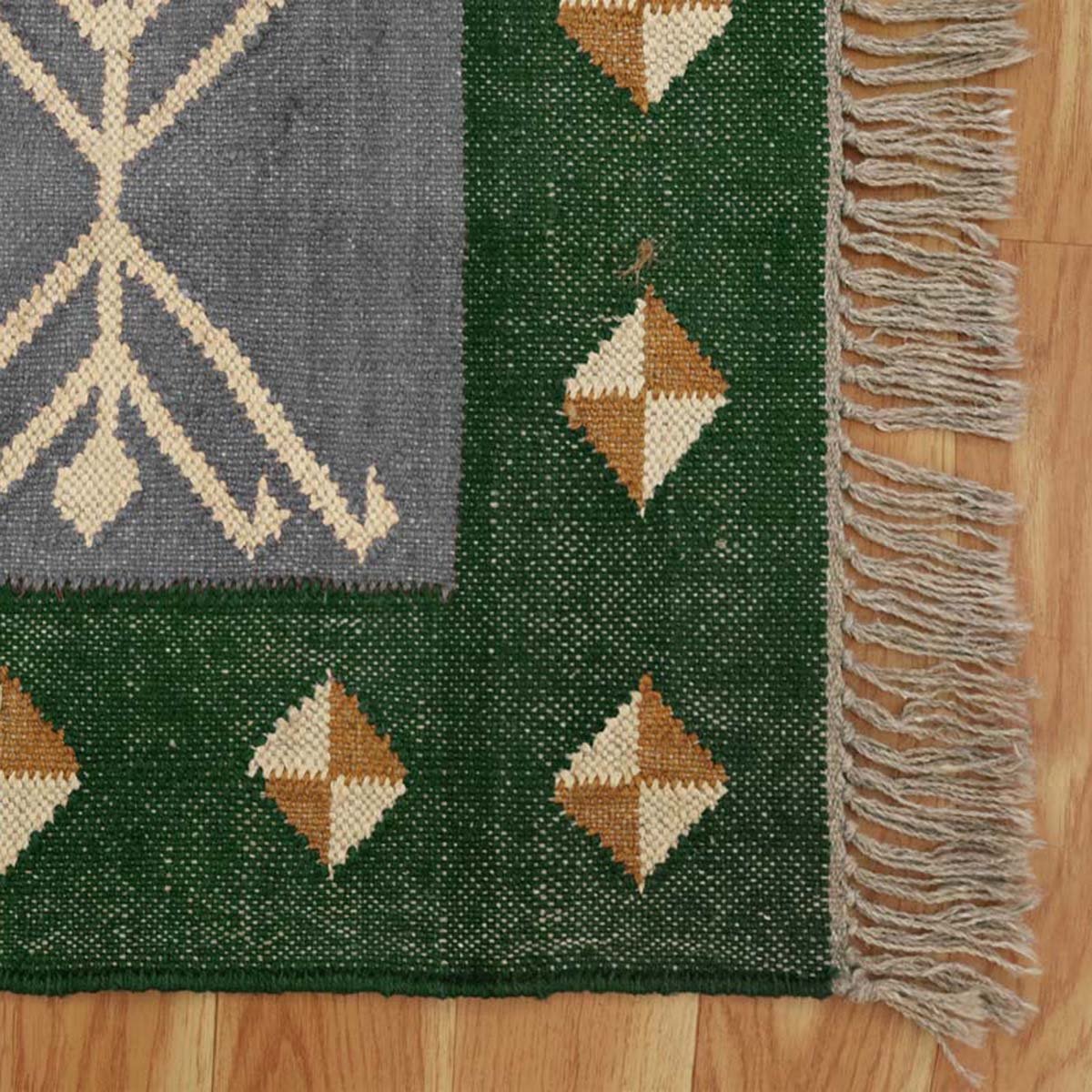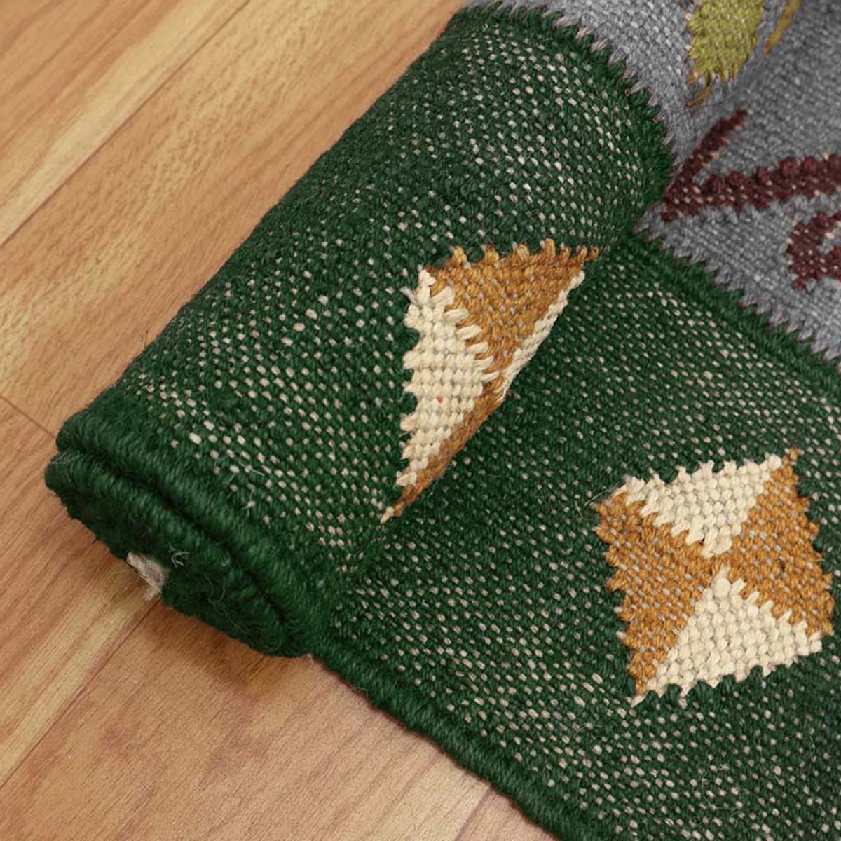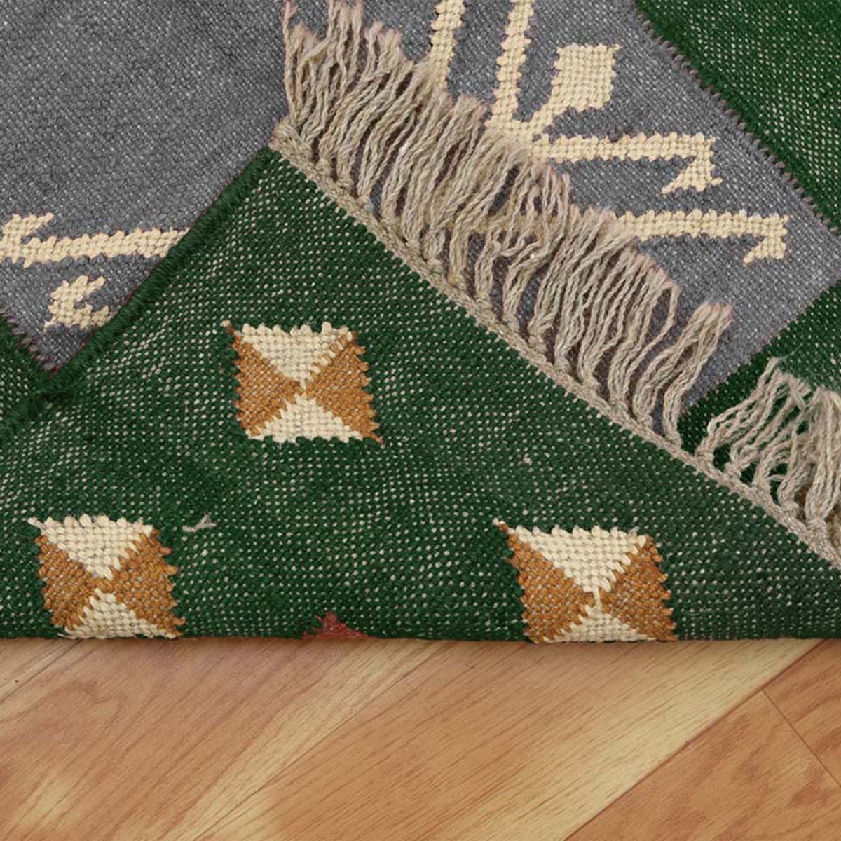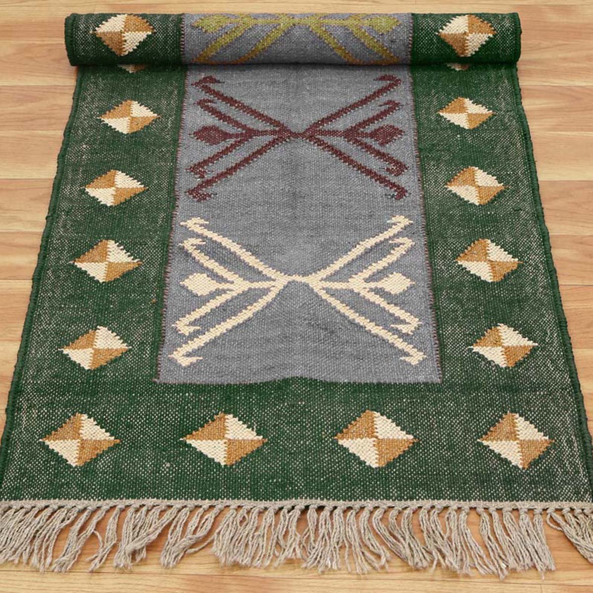 Indian Hand Woven Jute Kilim Runner Green Rug