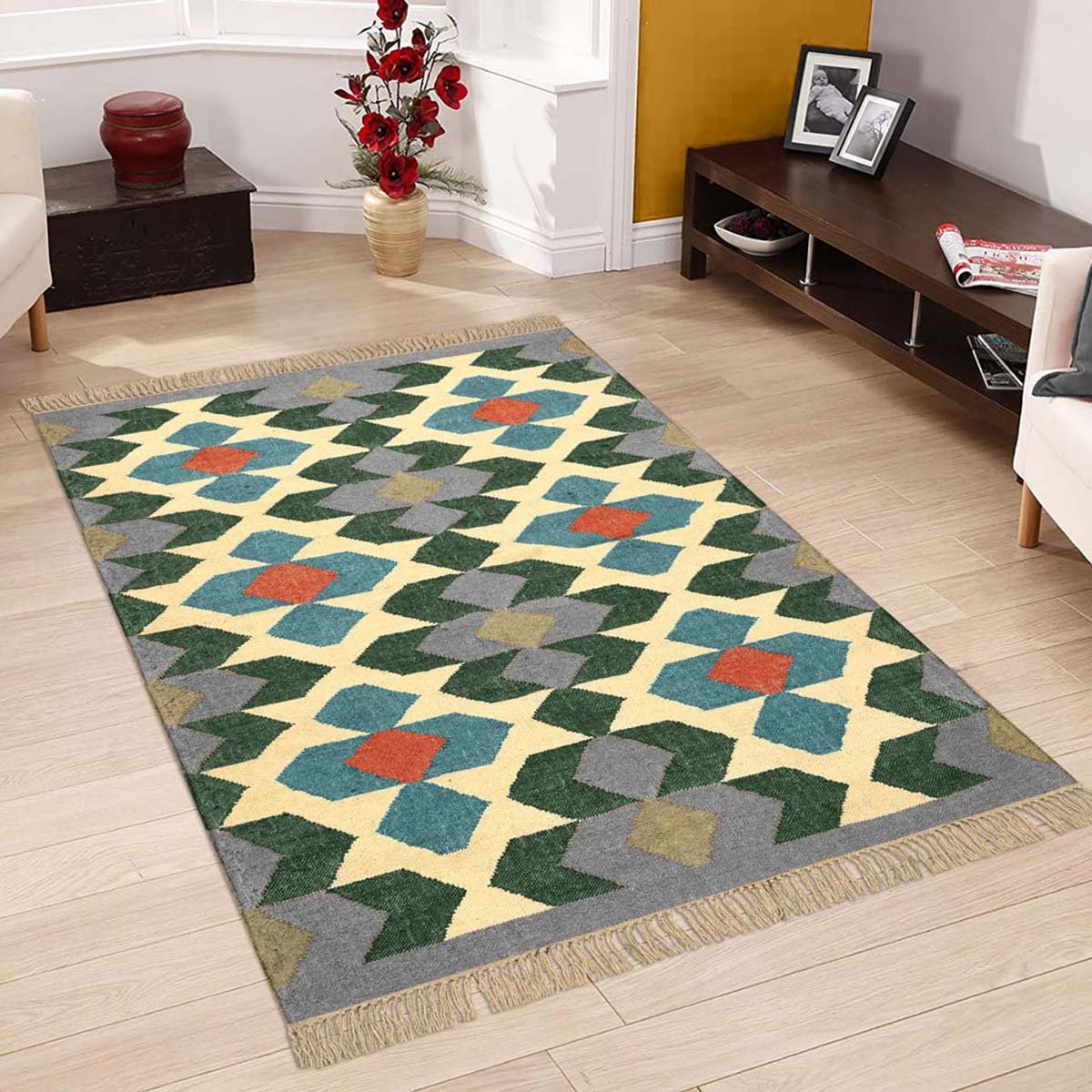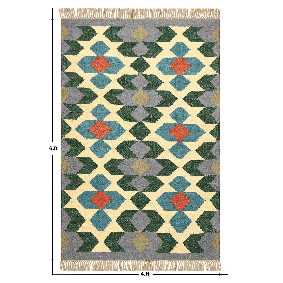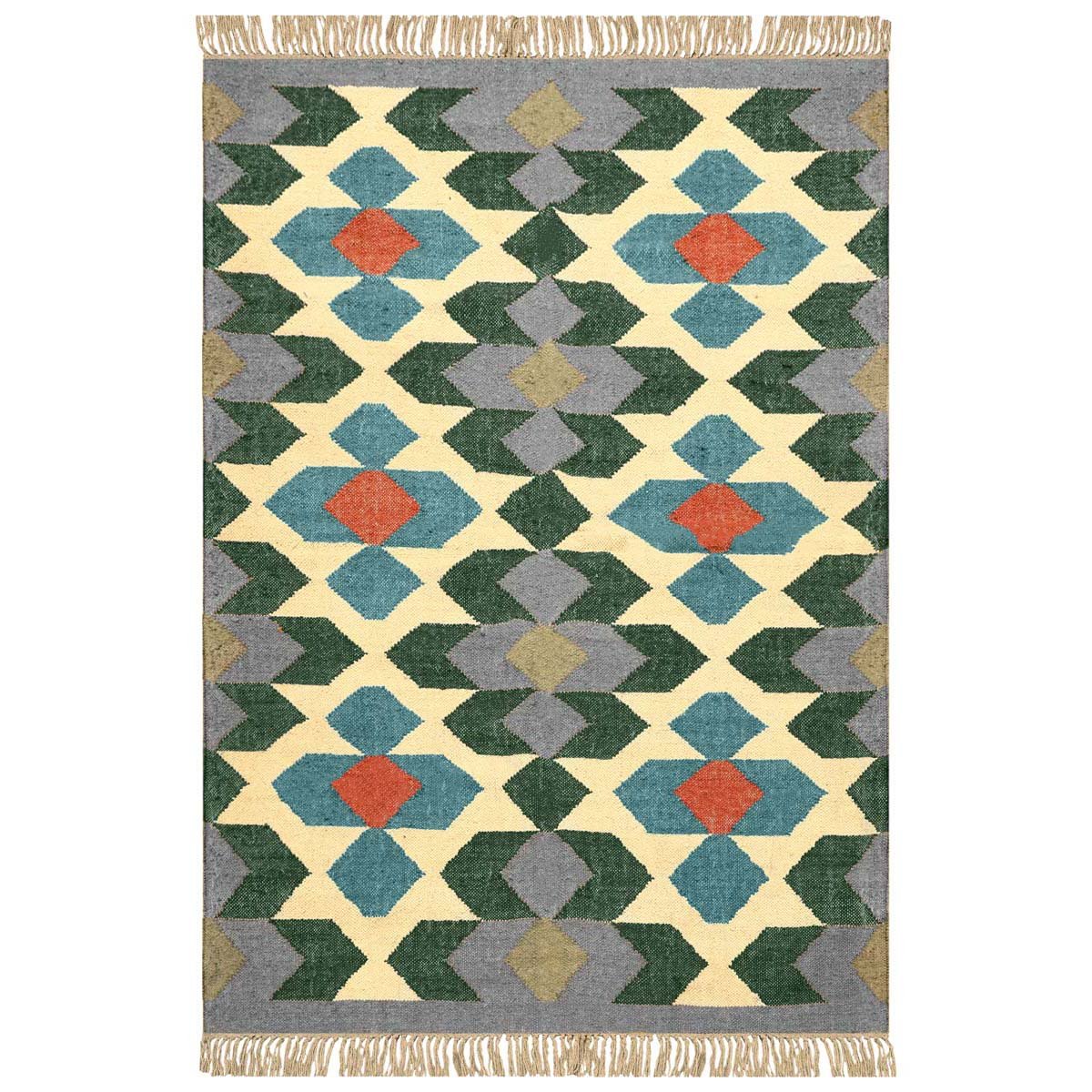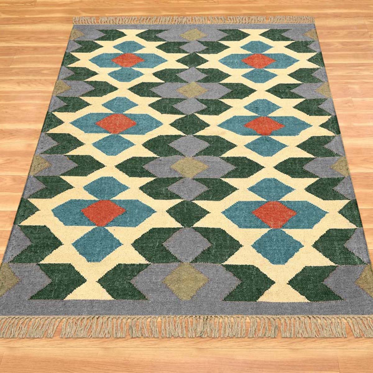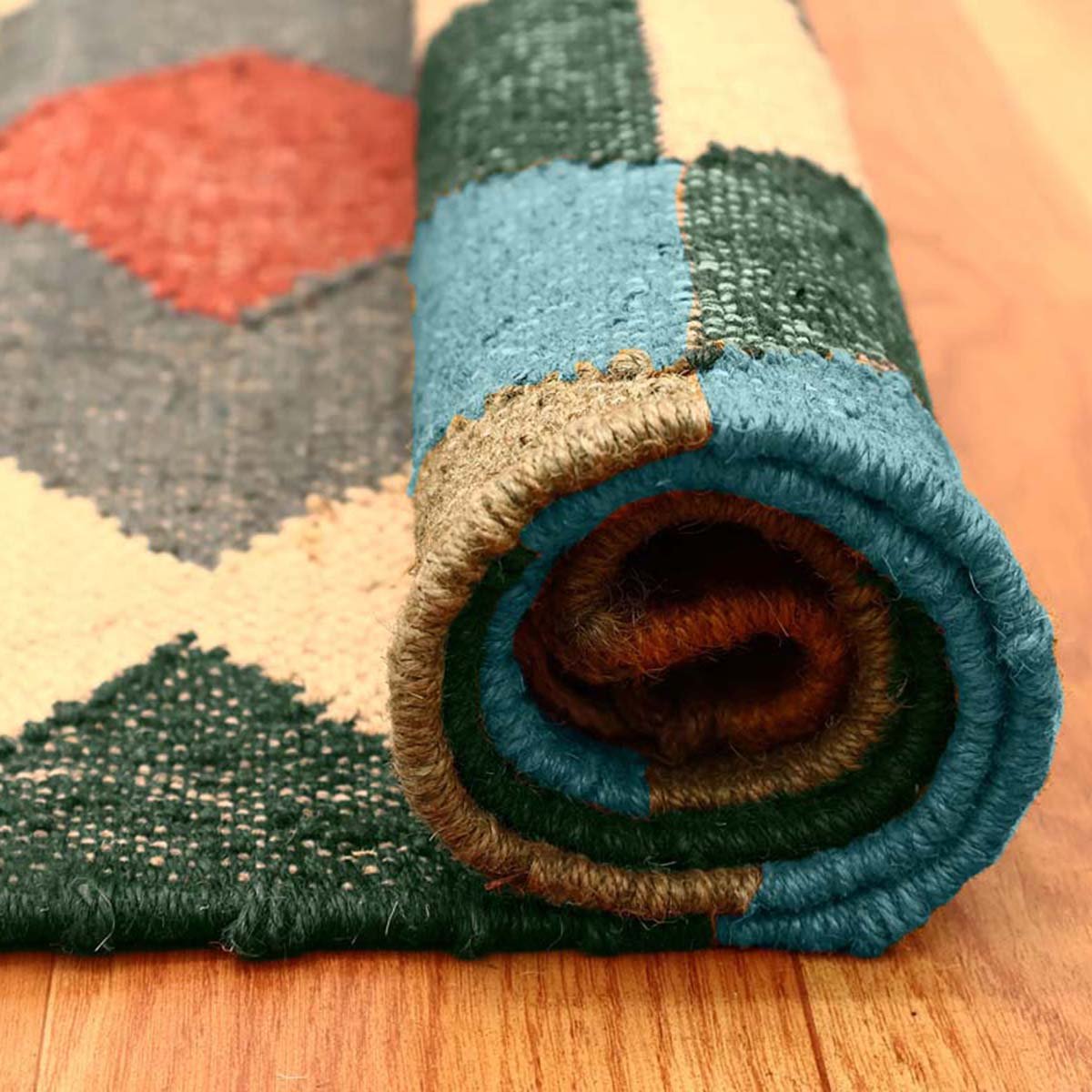 Indian Hand Woven Wool Jute Kilim Large Area Rug