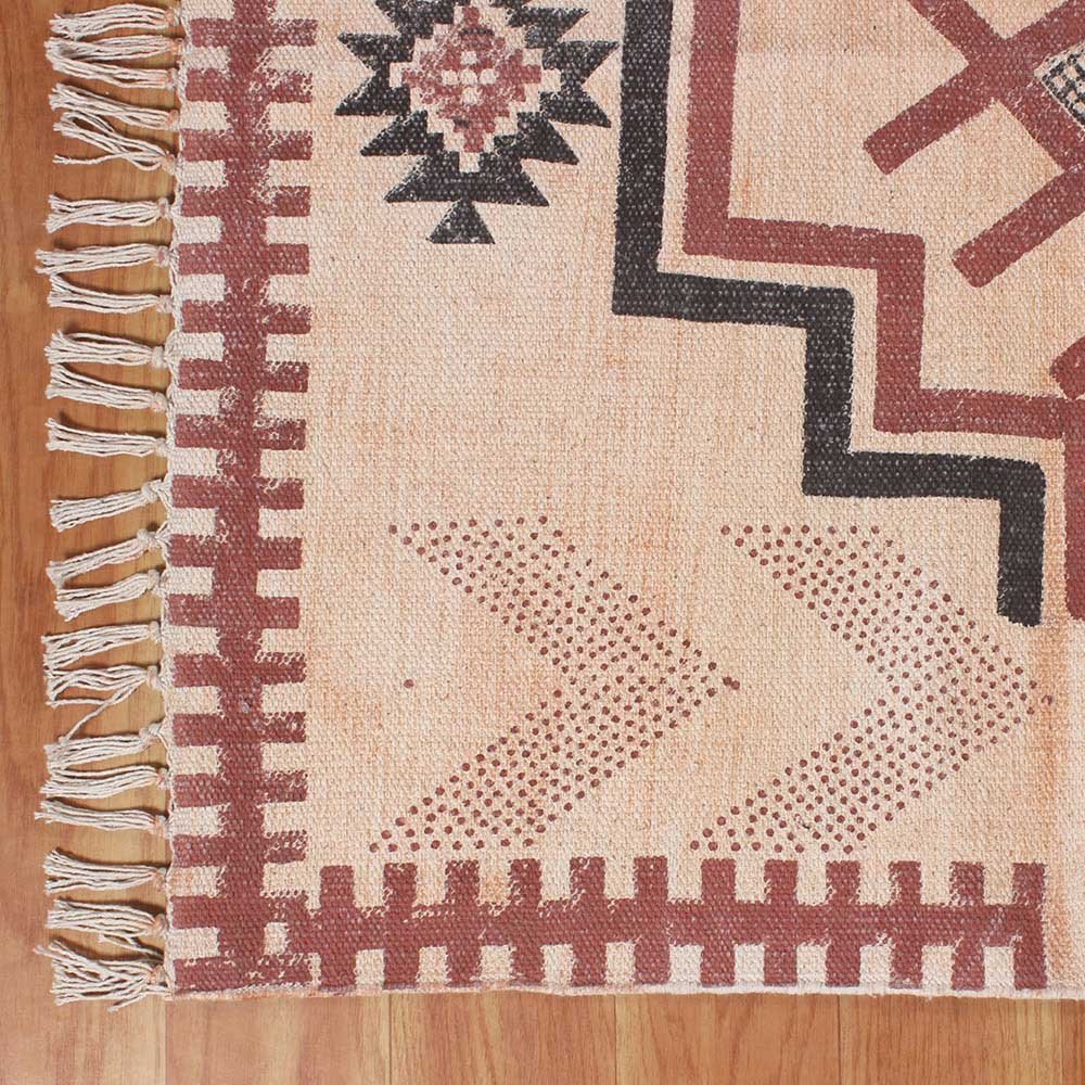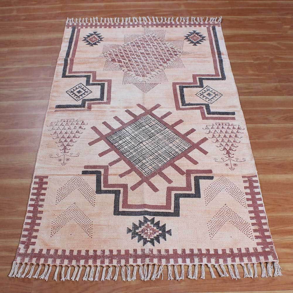 Moroccan Hand Block Printed Cotton Dhurrie