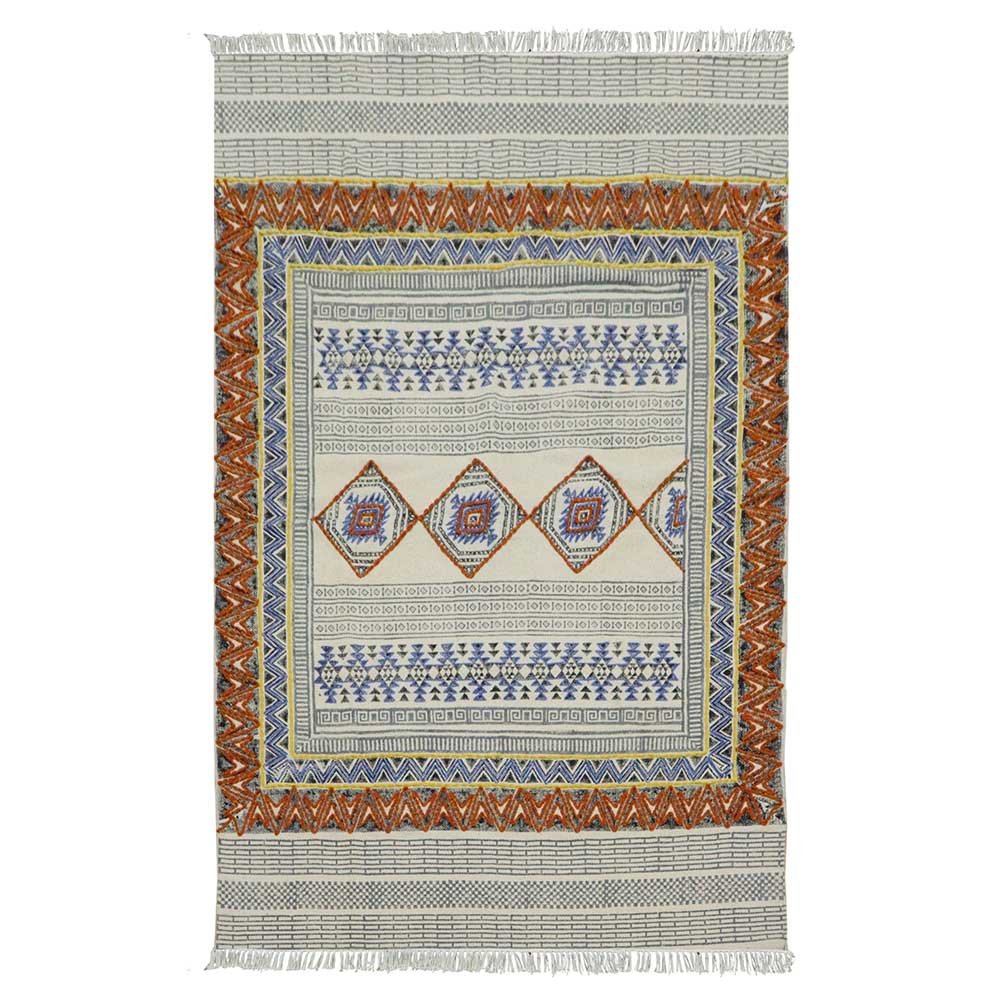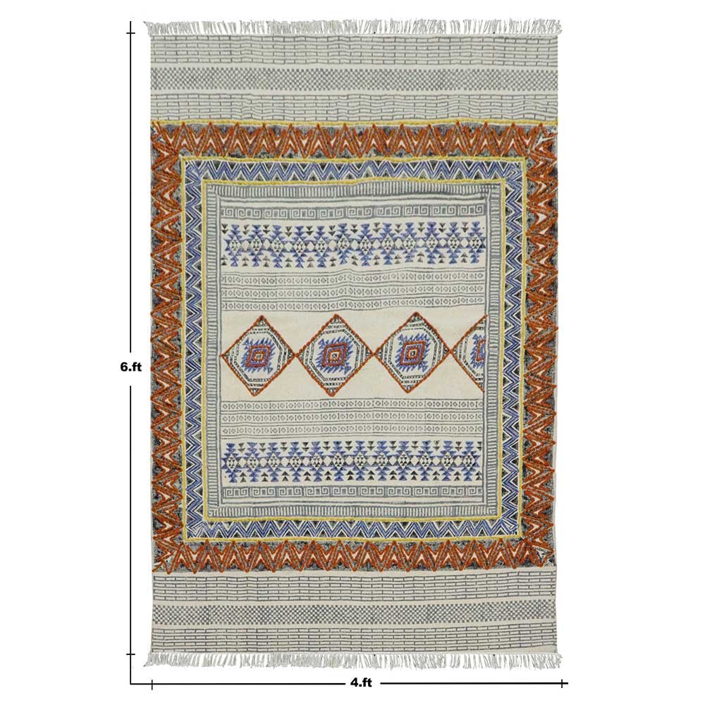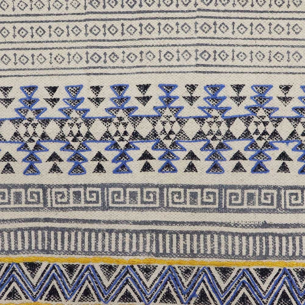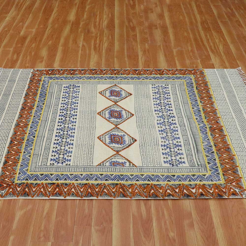 This is a beautiful handmade Cotton kilim rug weaved on Indian looms stamped with natural vegetable-dyes using hand-made wooden blocks achieving the perfection of block printing art of Jaipur. This is best suitable for your home office entrance, bedroom, living room, kids room, dining room, kitchen,outdoor patio, terrace, beach and garden.