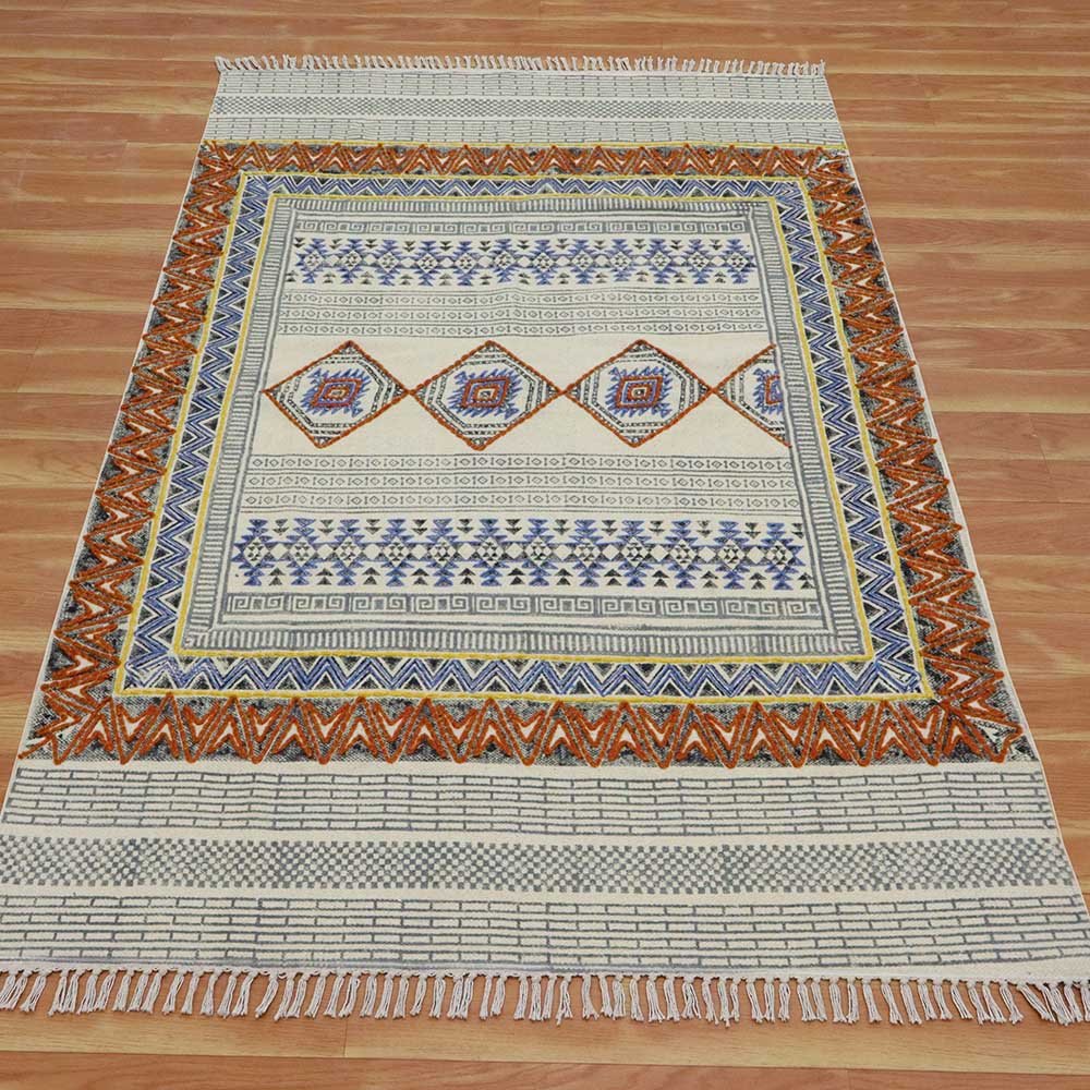 Handmade Orange Embroidery Cotton Large Area Rug