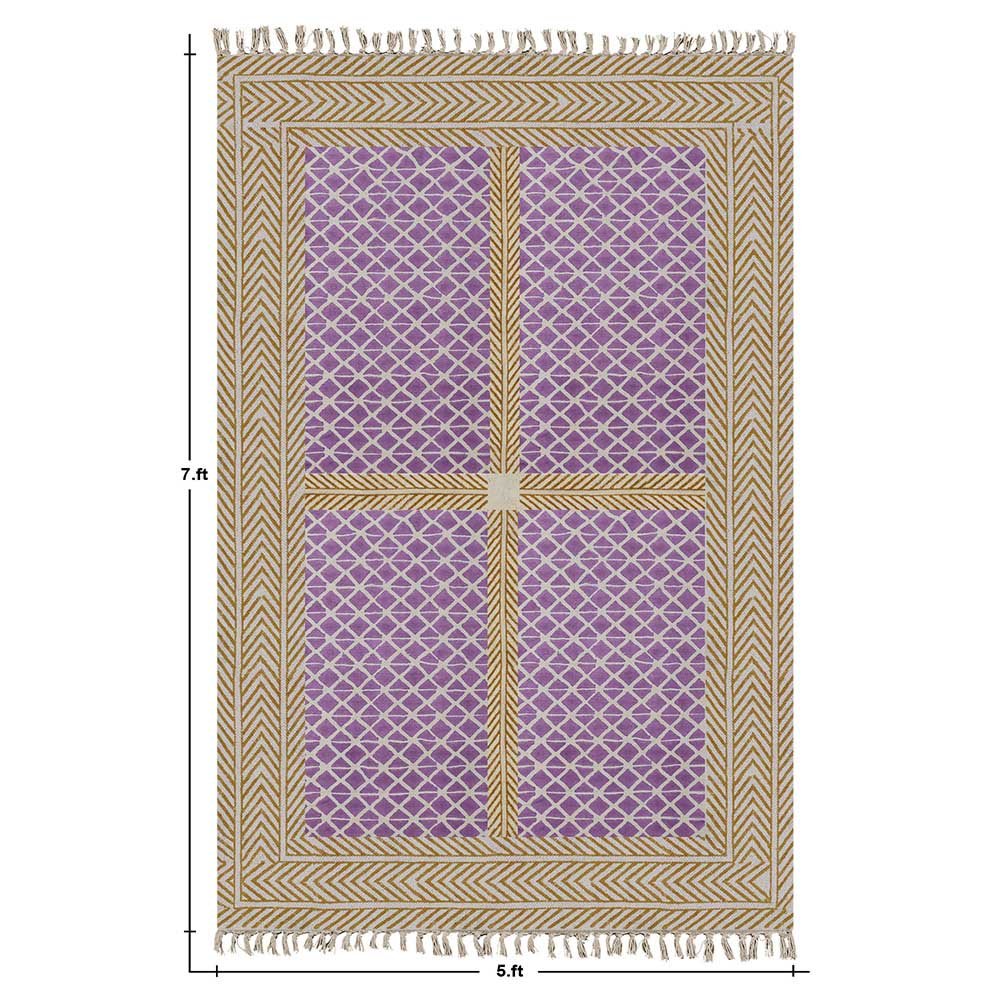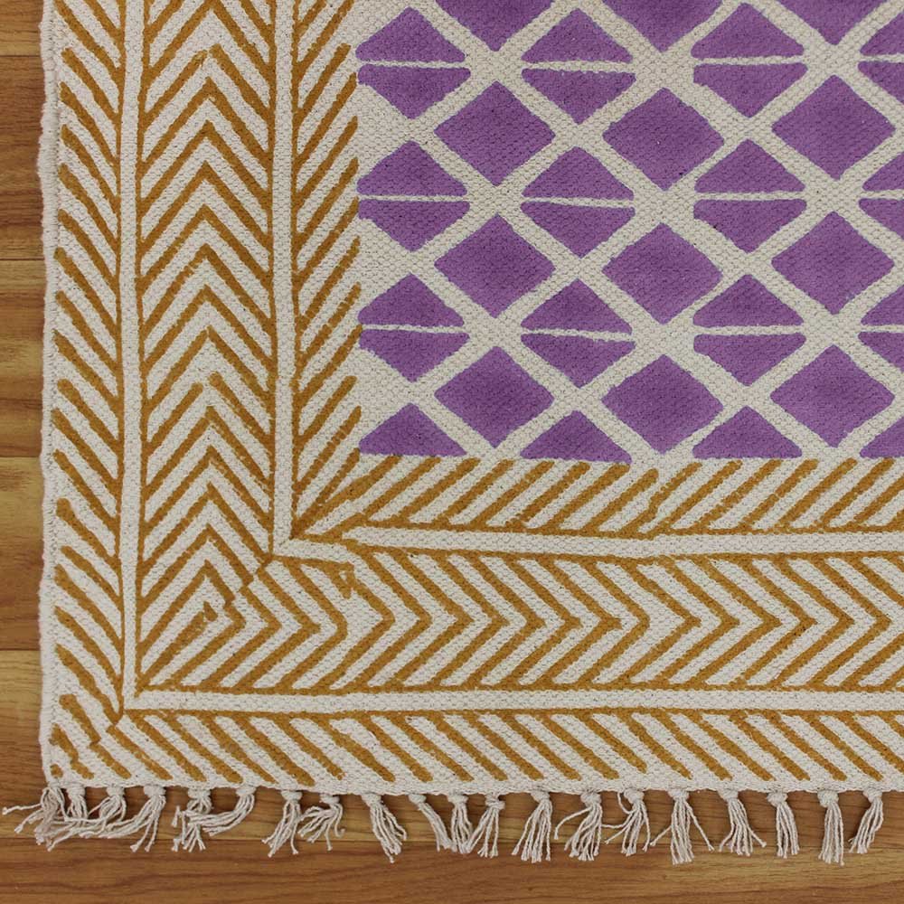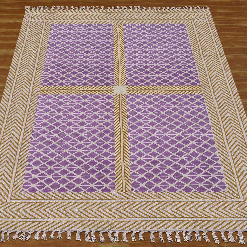 This is a beautiful handmade Cotton kilim rug weaved on Indian looms stamped with natural vegetable-dyes using hand-made wooden blocks achieving the perfection of block printing art of Jaipur. This is best suitable for your home office entrance, bedroom, living room, kids room, dining room, kitchen,outdoor patio, terrace, beach and garden.