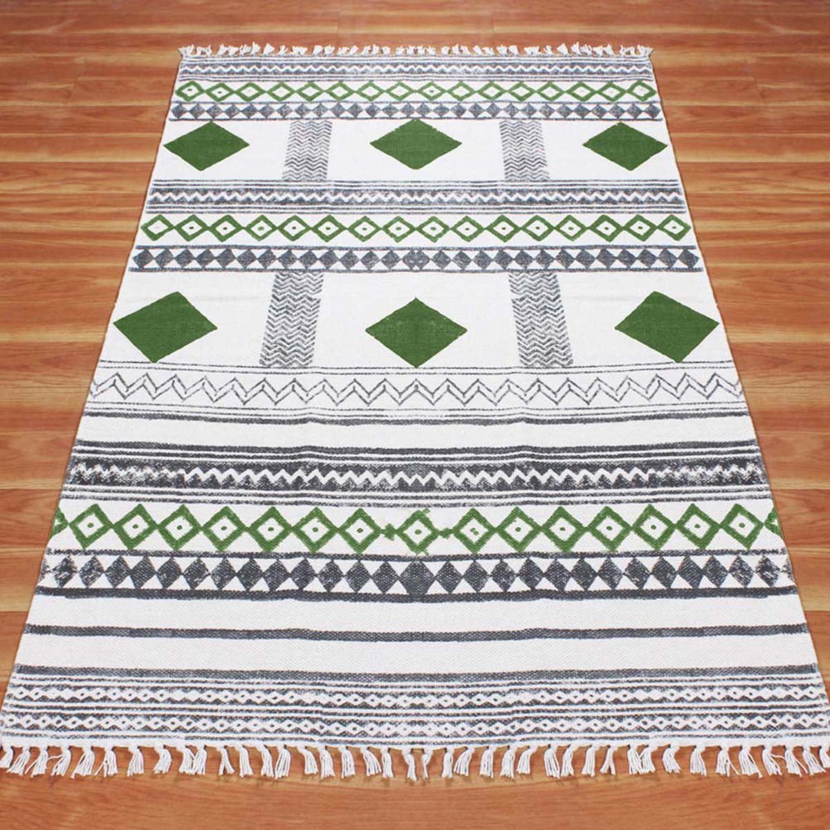 This is a beautiful handmade Cotton kilim rug weaved on Indian looms stamped with natural vegetable-dyes using hand-made wooden blocks achieving the perfection of block printing art of Jaipur. This is best suitable for your home office entrance, bedroom, living room, kids room, dining room, kitchen,outdoor patio, terrace, beach and garden.