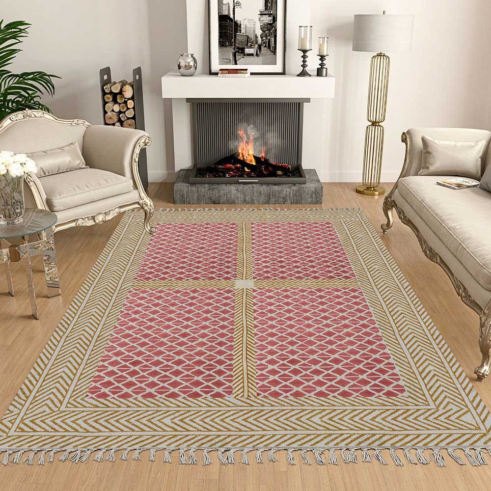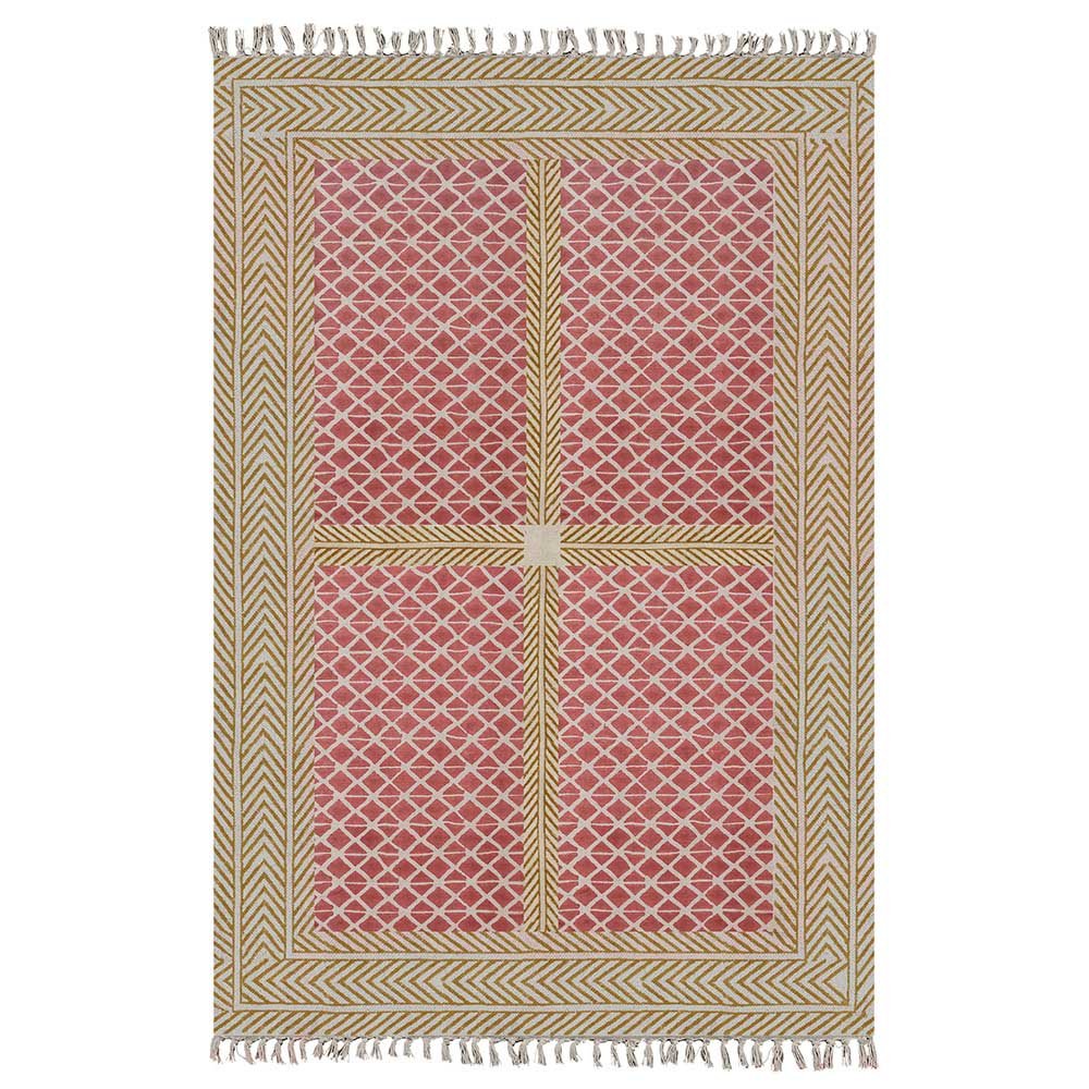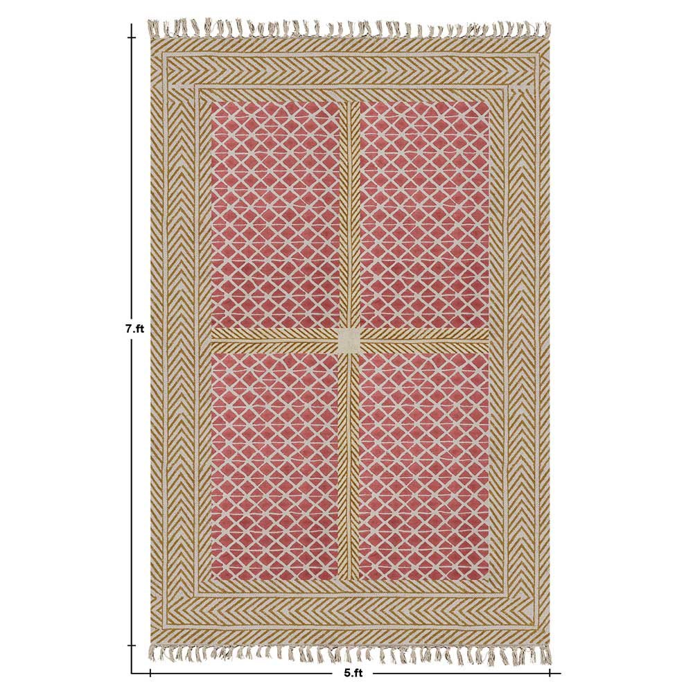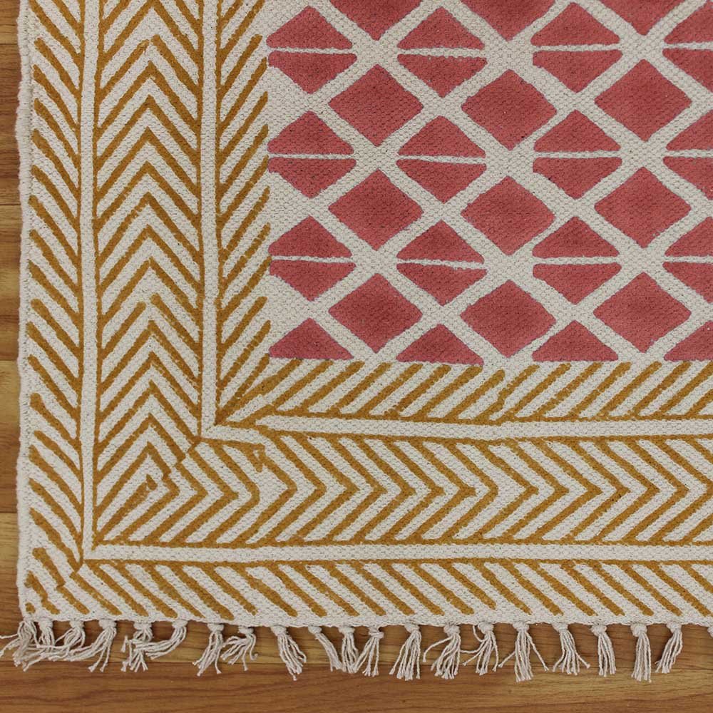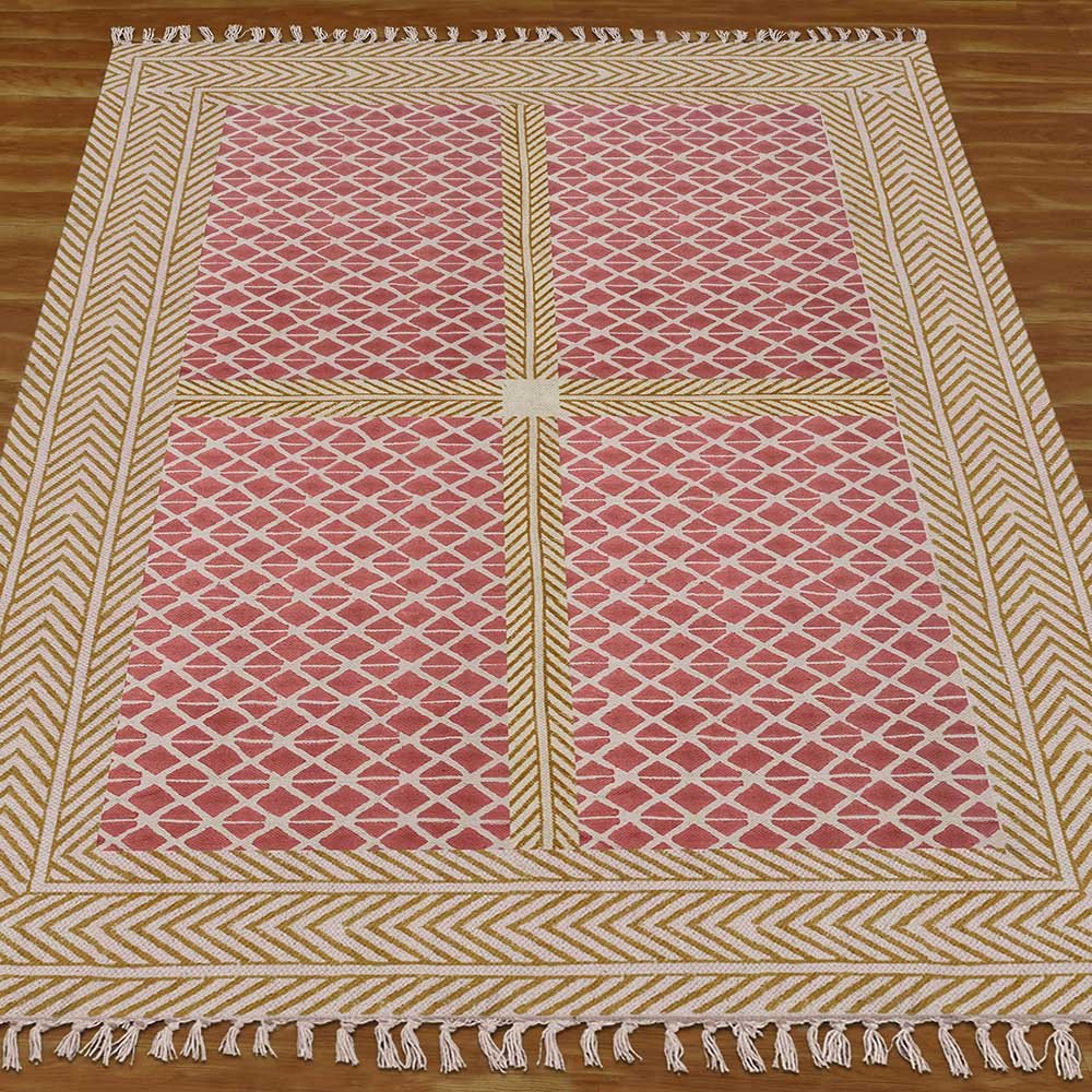This is a beautiful handmade Cotton kilim rug weaved on Indian looms stamped with natural vegetable-dyes using hand-made wooden blocks achieving the perfection of block printing art of Jaipur. This is best suitable for your home office entrance, bedroom, living room, kids room, dining room, kitchen,outdoor patio, terrace, beach and garden.