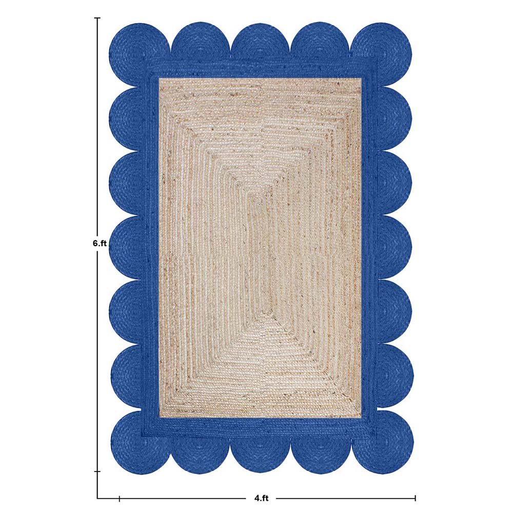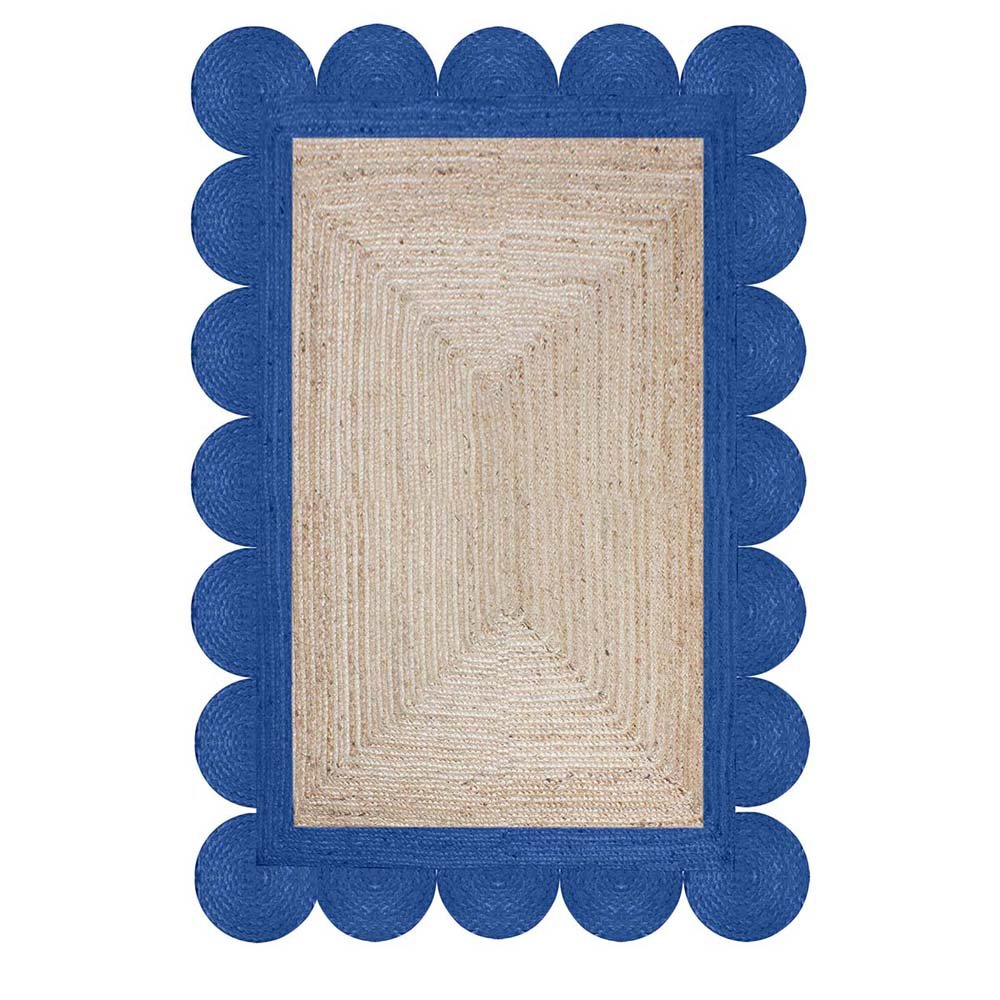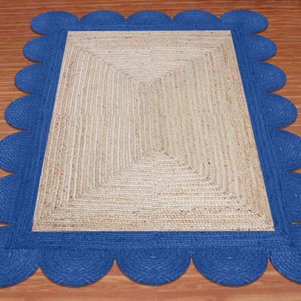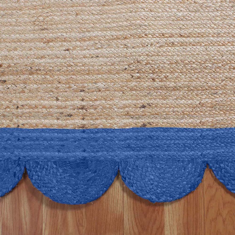 Scalloped Jute Handmade Blue Beige Area Rug