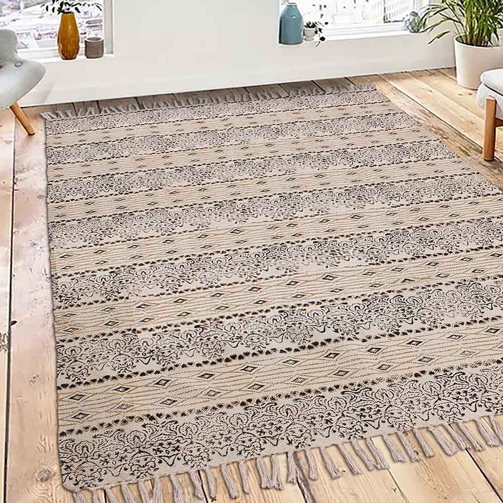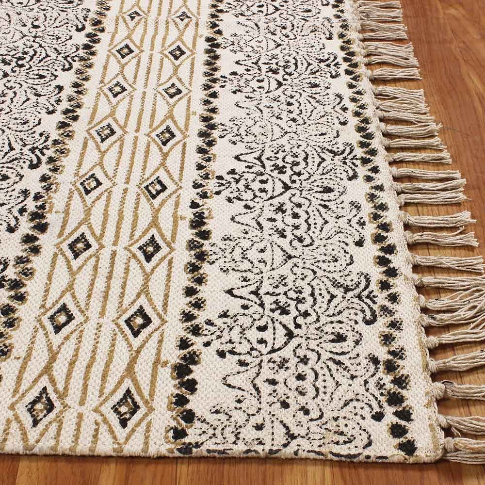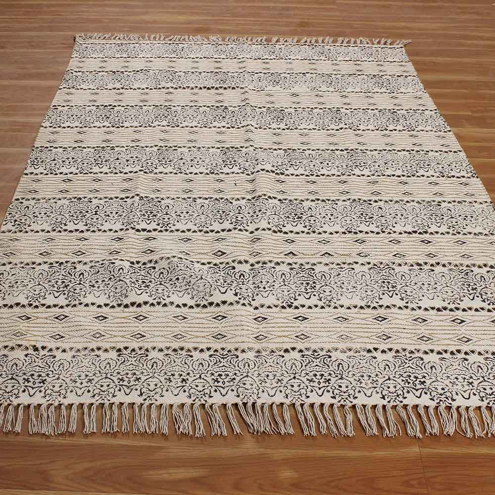 This is a beautiful handmade Cotton kilim rug weaved on Indian looms stamped with natural vegetable-dyes using hand-made wooden blocks achieving the perfection of block printing art of Jaipur. This is best suitable for your home office entrance, bedroom, living room, kids room, dining room, kitchen,outdoor patio, terrace, beach and garden.