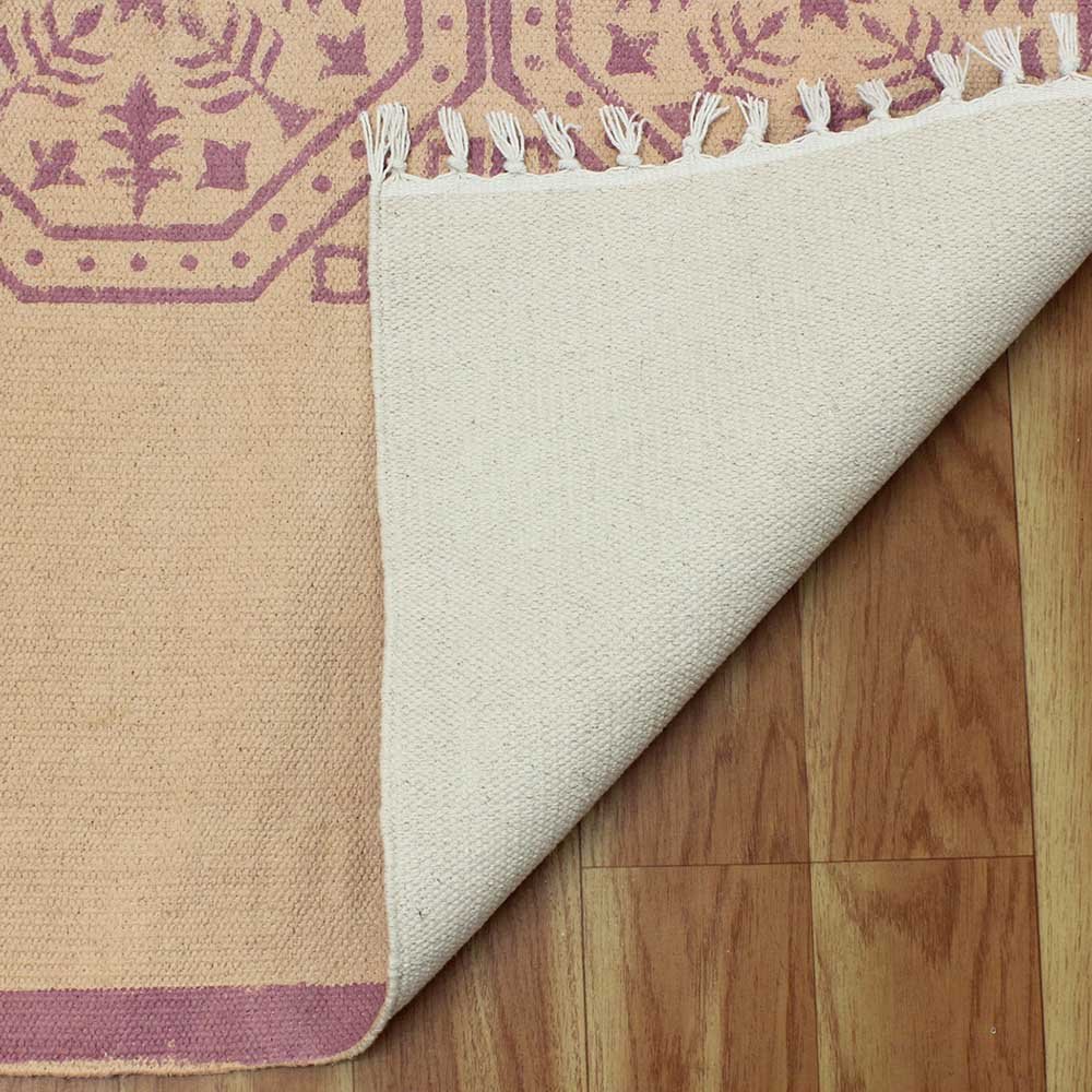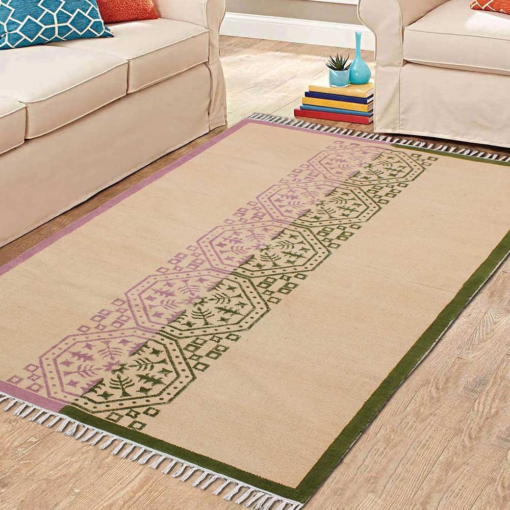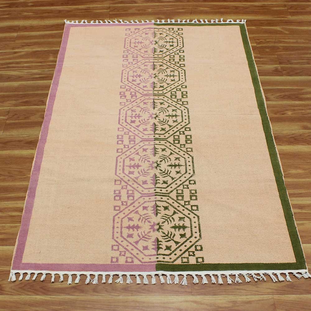 This is a beautiful handmade Cotton kilim rug weaved on Indian looms stamped with natural vegetable-dyes using hand-made wooden blocks achieving the perfection of block printing art of Jaipur. This is best suitable for your home office entrance, bedroom, living room, kids room, dining room, kitchen,outdoor patio, terrace, beach and garden.