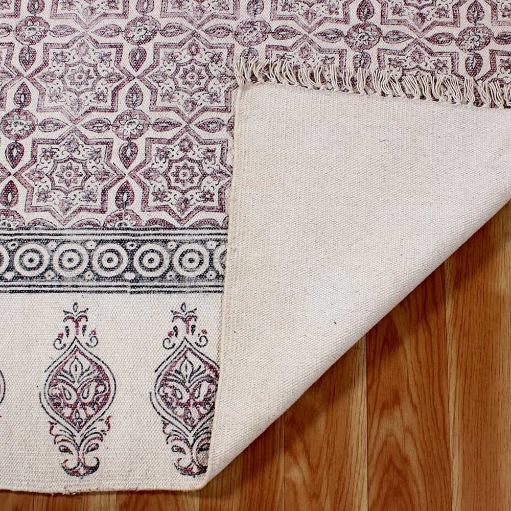 This is a beautiful handmade Cotton kilim rug weaved on Indian looms stamped with natural vegetable-dyes using hand-made wooden blocks achieving the perfection of block printing art of Jaipur. This is best suitable for your home office entrance, bedroom, living room, kids room, dining room, kitchen,outdoor patio, terrace, beach and garden.