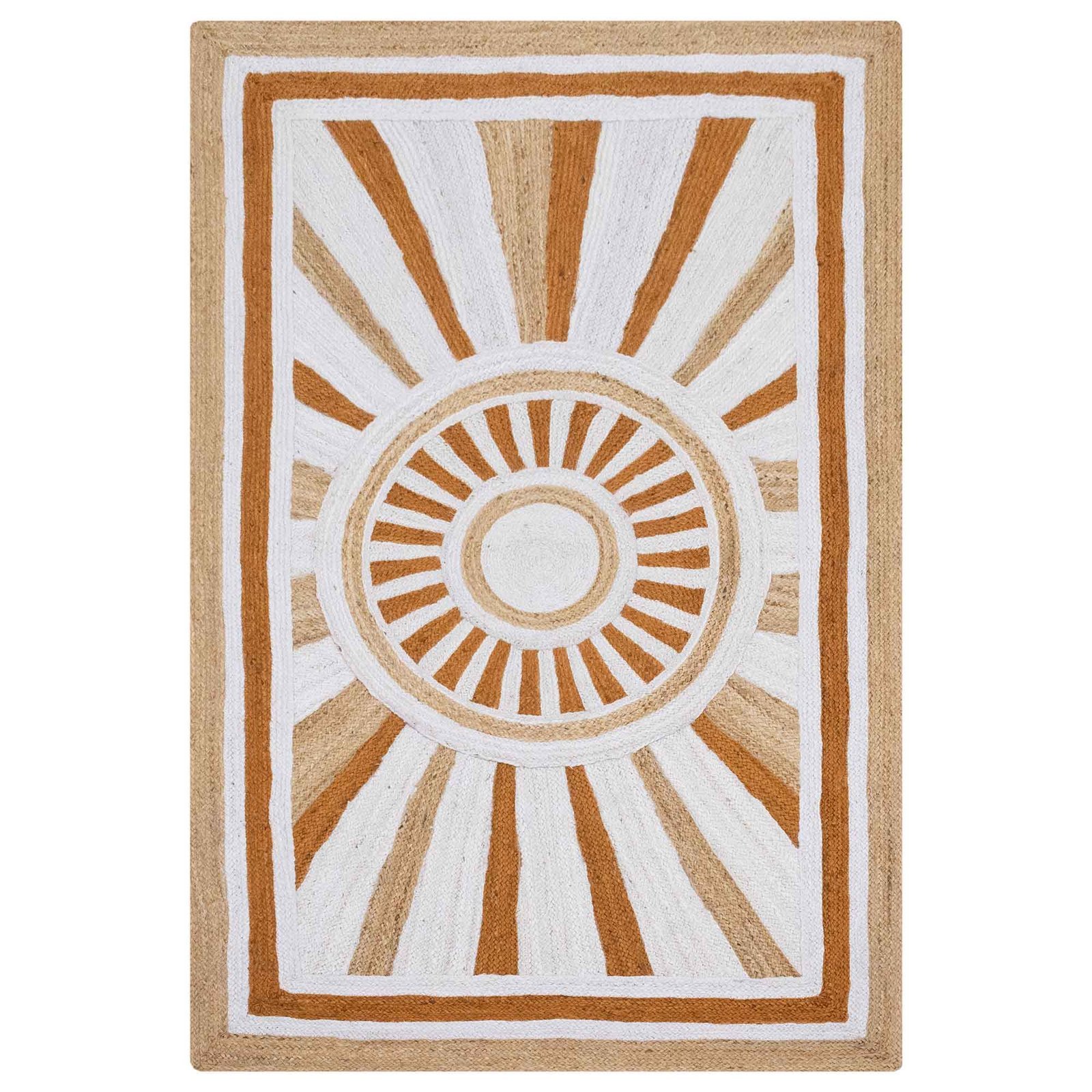 Vibrant White Beige Hand Braided Jute Rug