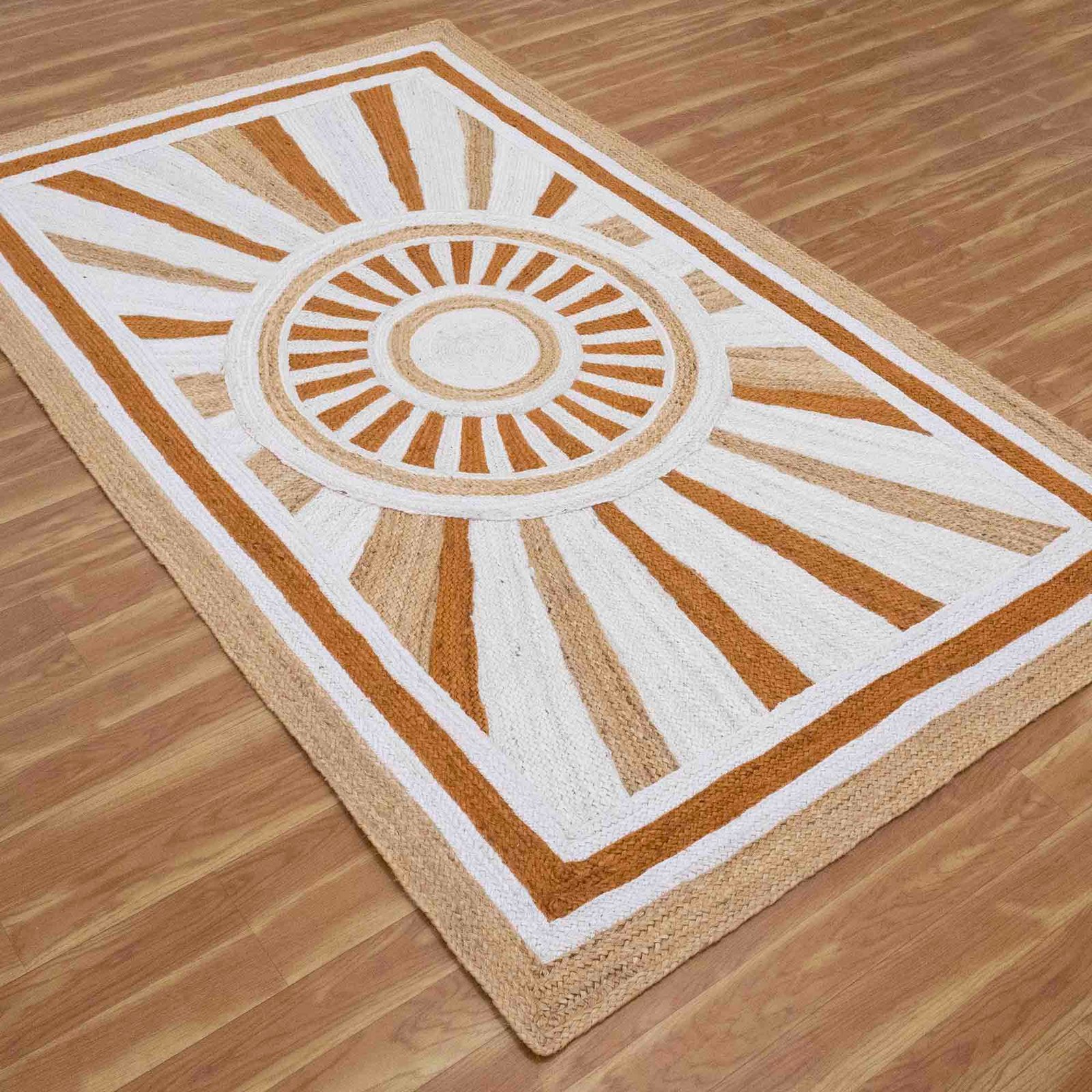 The rug is an outcome of a 100% handmade process using natural jute yarns that are eco-friendly. The second most recognized cultivated vegetable Fiber after cotton is this natural Fiber. As such, the manufacturing process of this beautiful jute rug is a 100% handmade and eco-environment-friendly process beginning from the cultivating of natural jute Fiber to hand weaving these jute yarns.