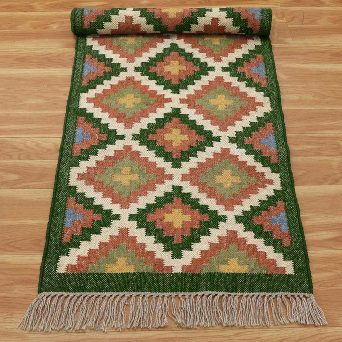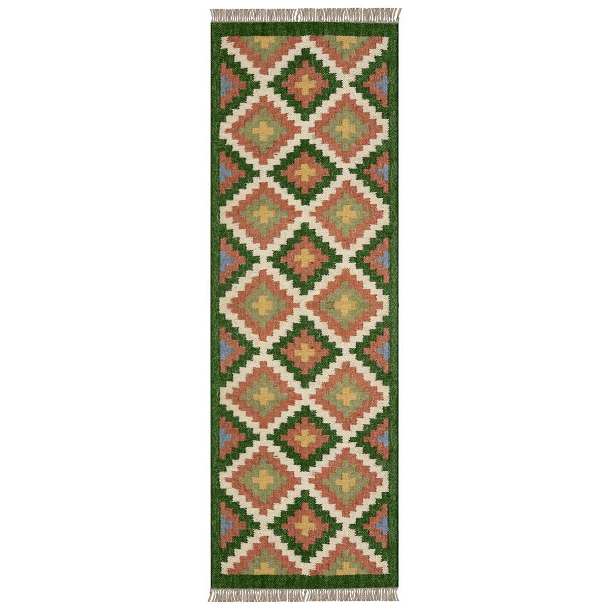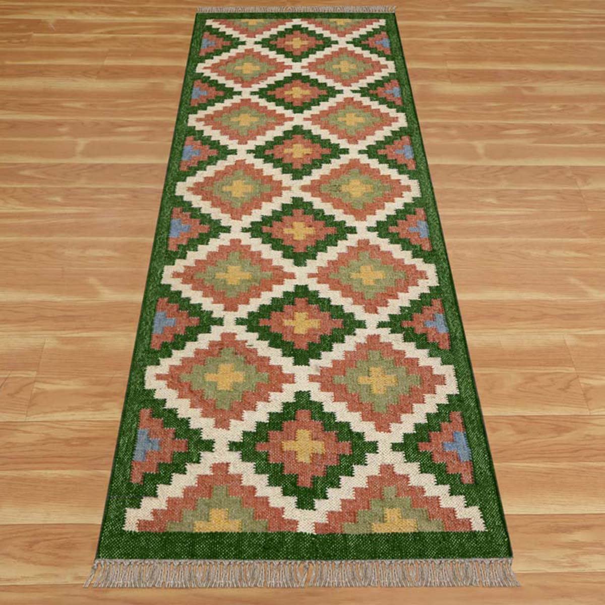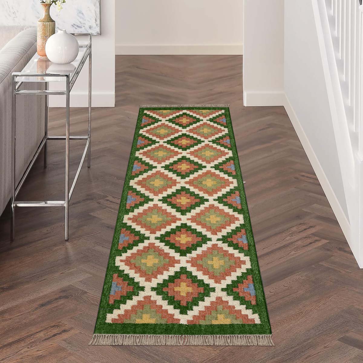 Be the first to review “Wool and Jute Kilim Green Runner Area Rug”