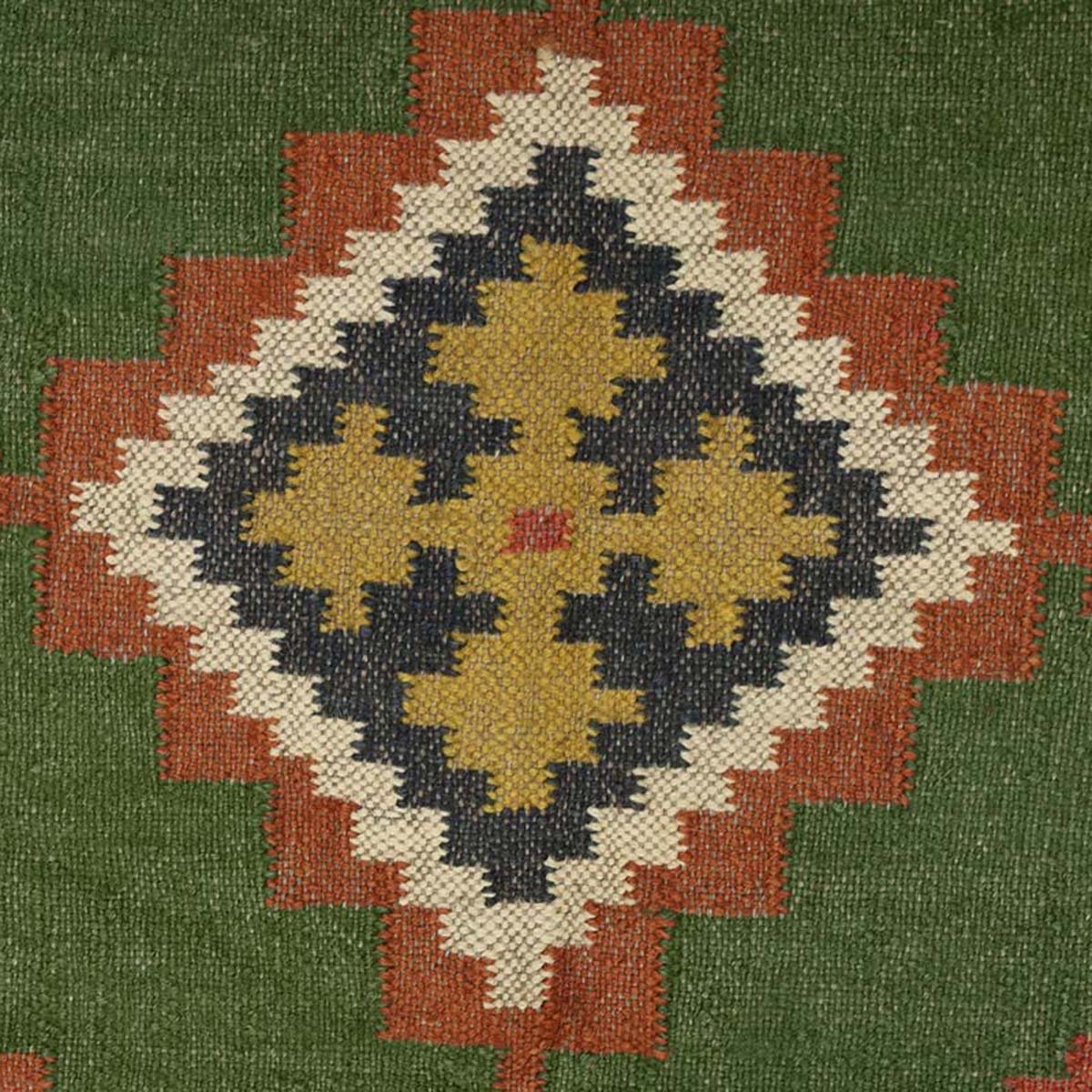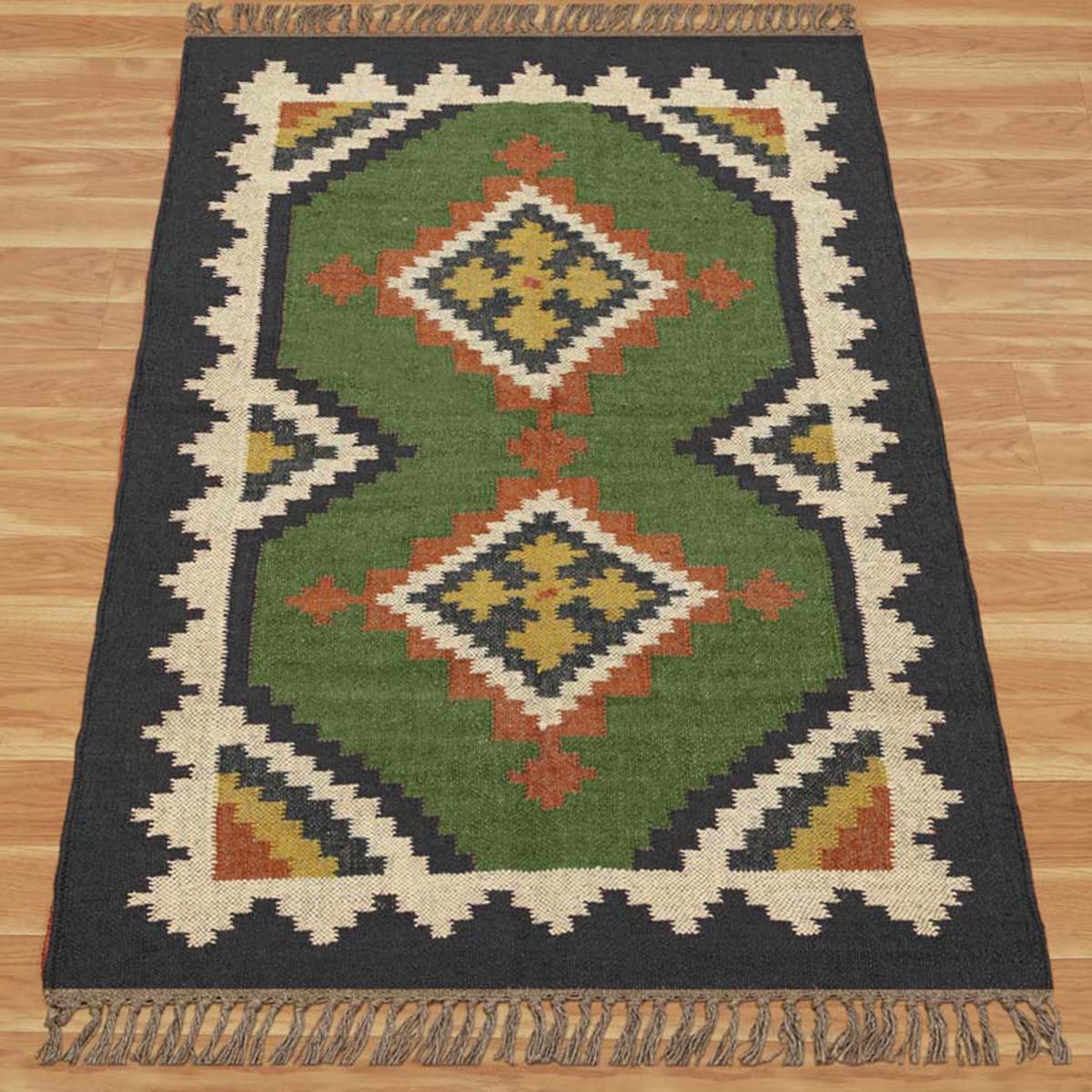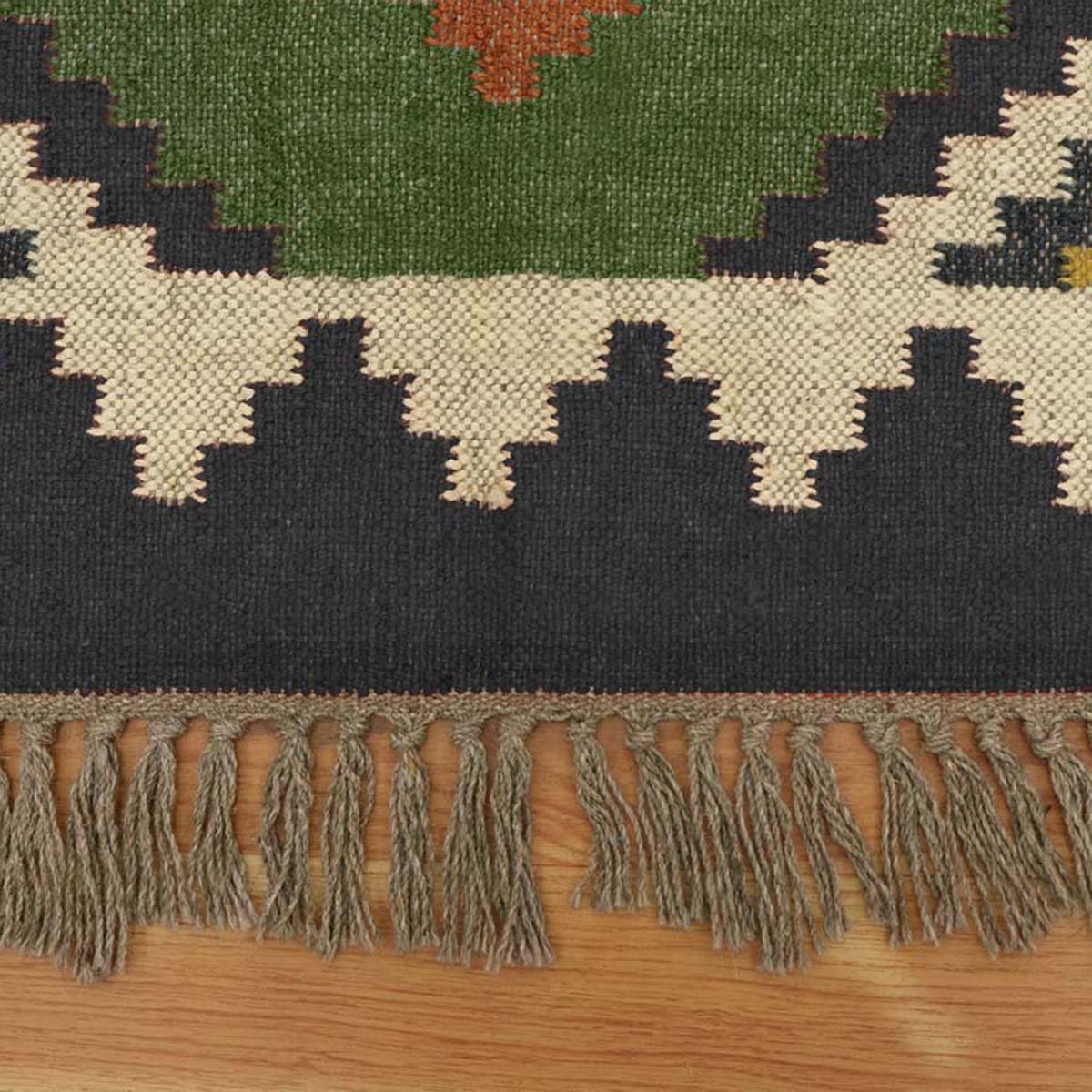 The rug is the result of a 100% handmade process using natural wool and jute, both of which are 100% eco-friendly. Jute, the second most cultivated vegetable fiber in the world after cotton, and wool are meticulously handwoven to create this beautiful rug. The manufacturing process of this wool and jute rug is entirely handcrafted and eco-friendly, starting from the cultivation of natural jute fiber to the hand-weaving of these jute yarns.
