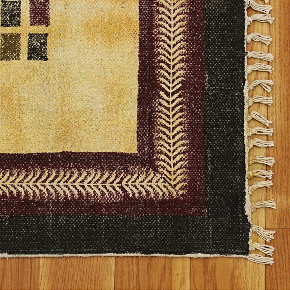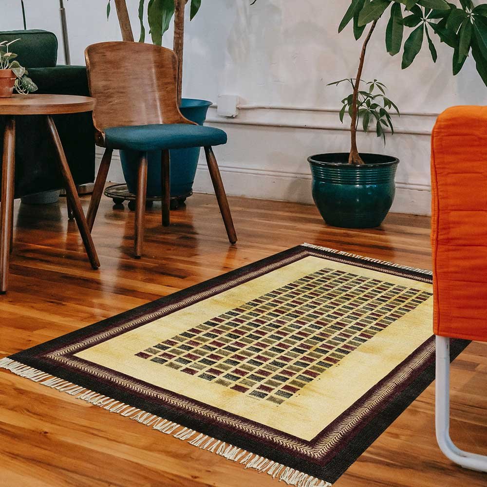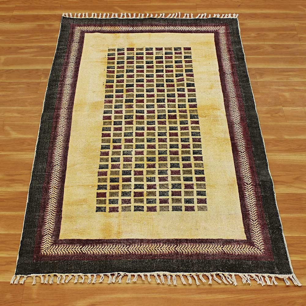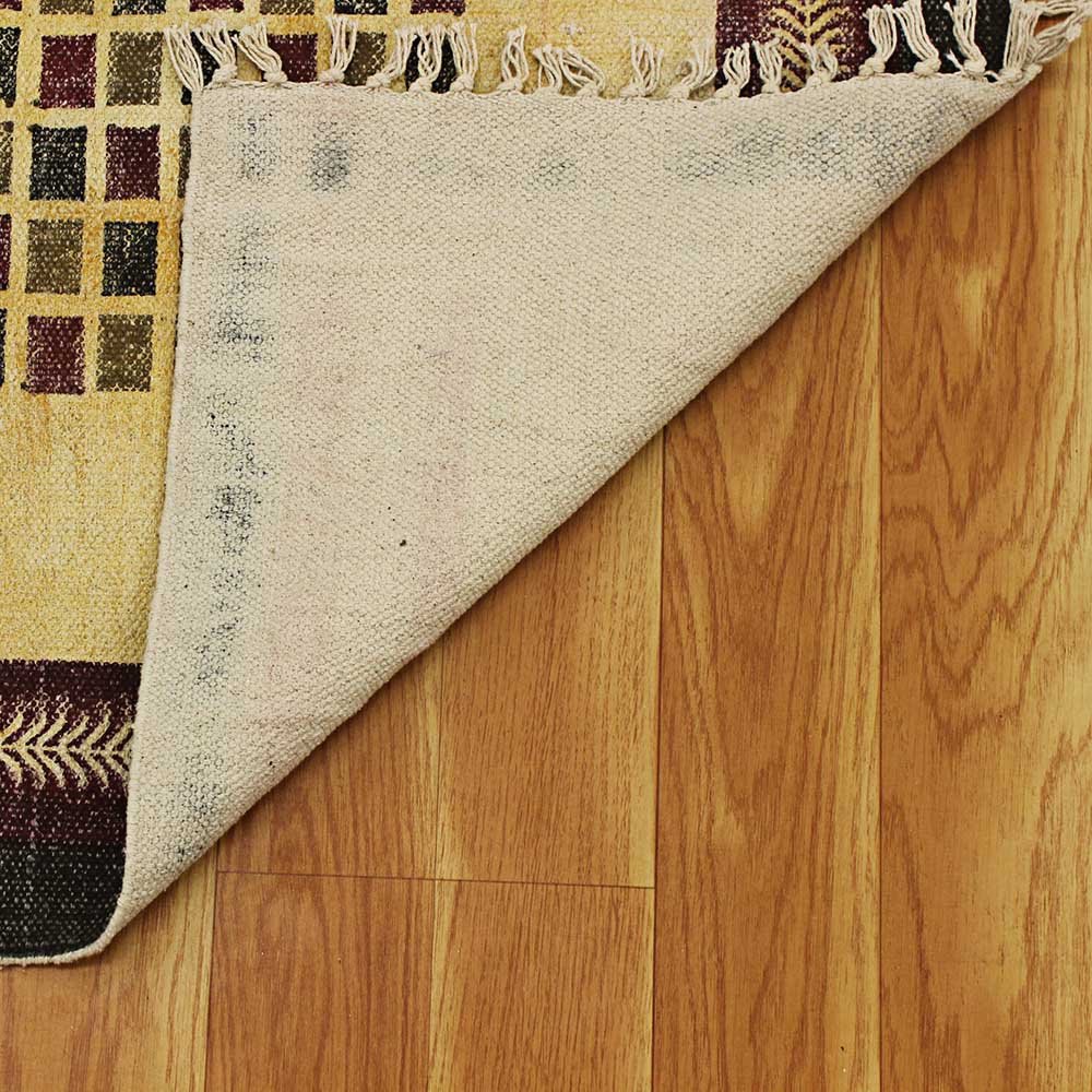 This is a beautiful handmade Cotton kilim rug weaved on Indian looms stamped with natural vegetable-dyes using hand-made wooden blocks achieving the perfection of block printing art of Jaipur. This is best suitable for your home office entrance, bedroom, living room, kids room, dining room, kitchen,outdoor patio, terrace, beach and garden.