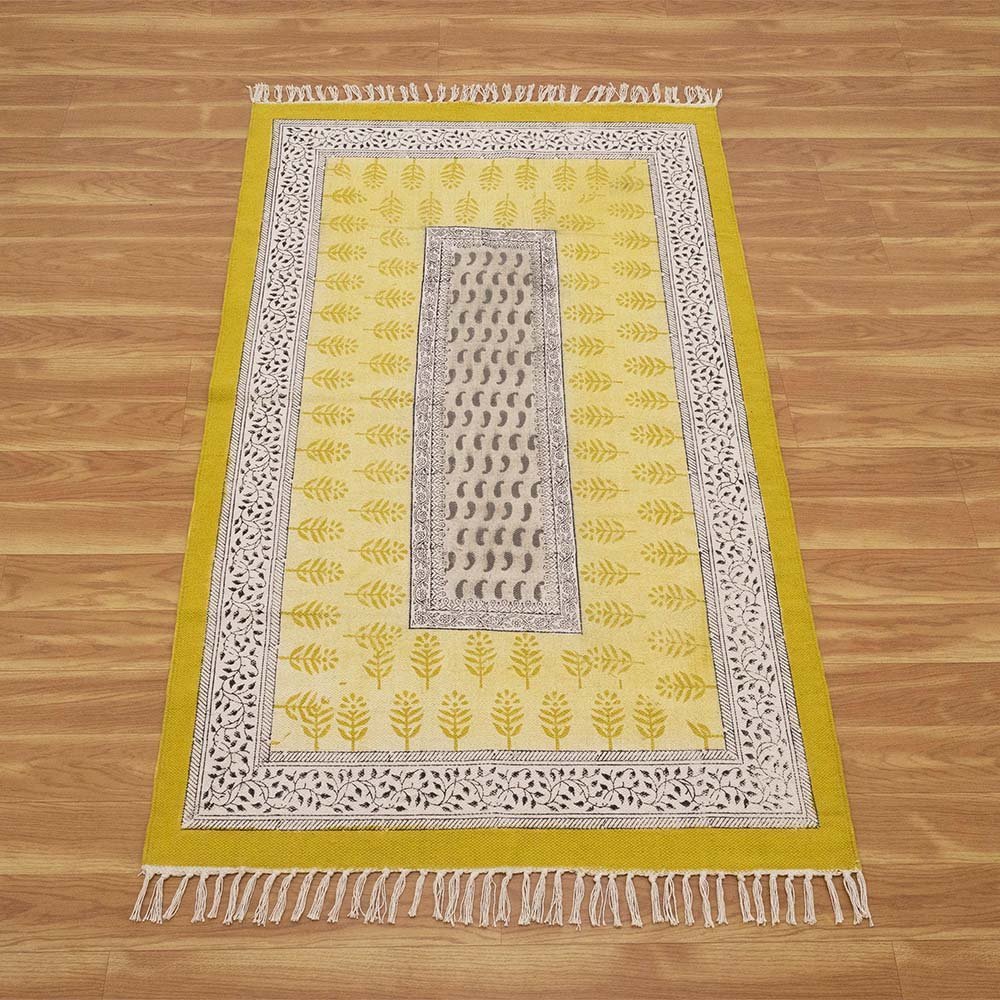 This is a beautiful handmade Cotton kilim rug weaved on Indian looms stamped with natural vegetable-dyes using hand-made wooden blocks achieving the perfection of block printing art of Jaipur. This is best suitable for your home office entrance, bedroom, living room, kids room, dining room, kitchen,outdoor patio, terrace, beach and garden.