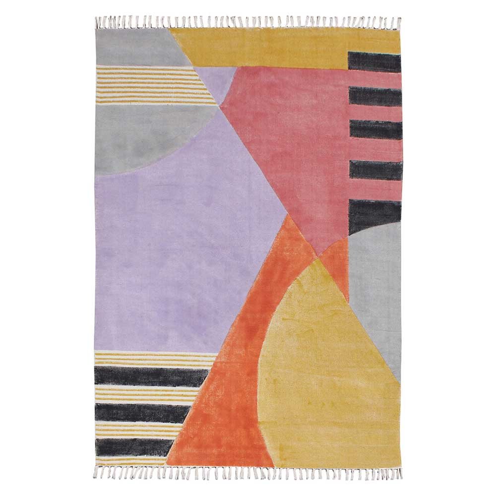Yellow Hand Block Print Geometric Cotton Rug