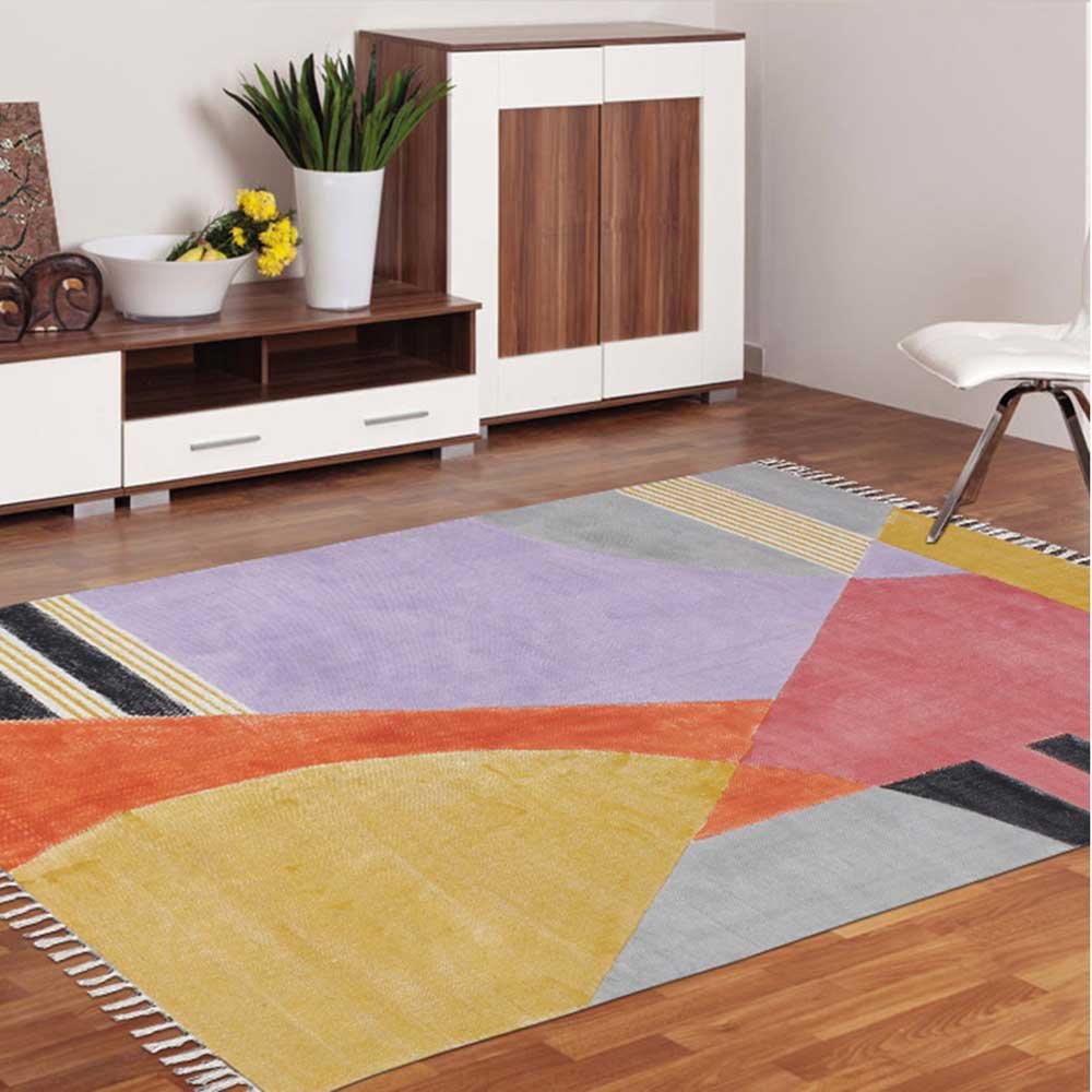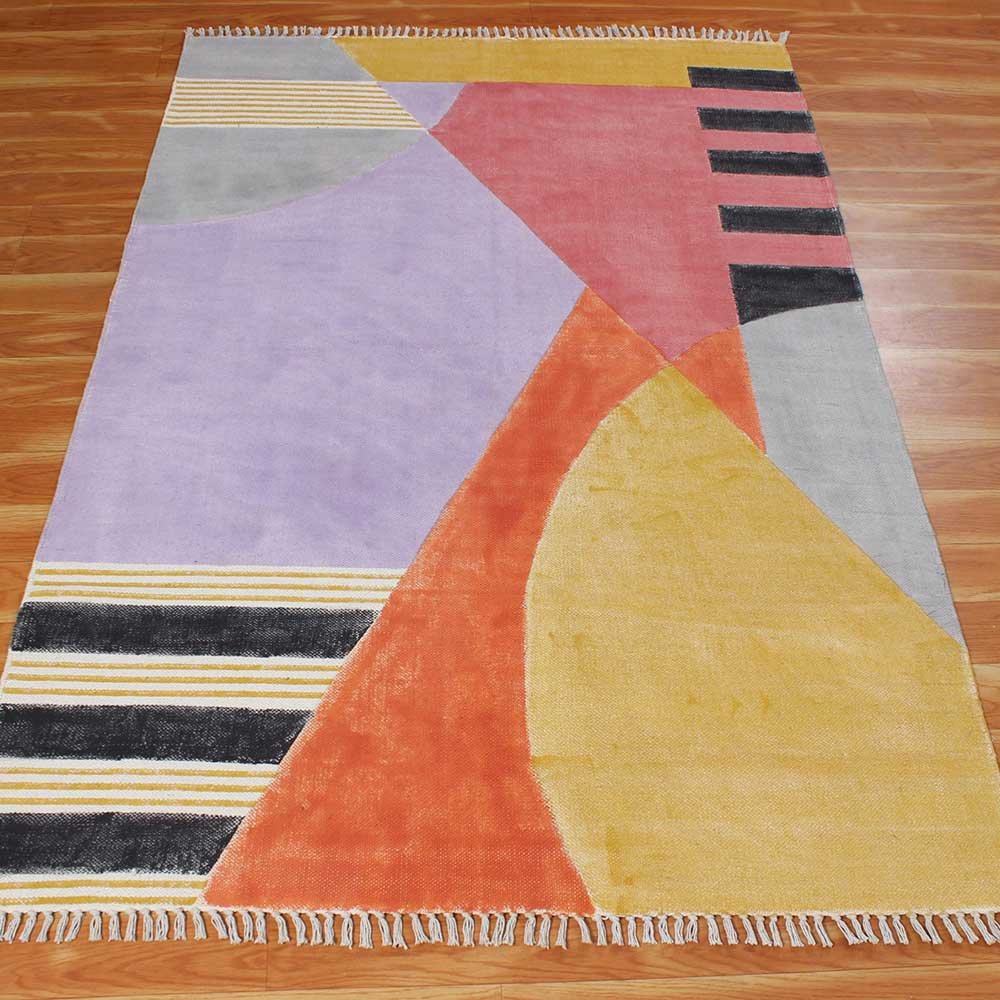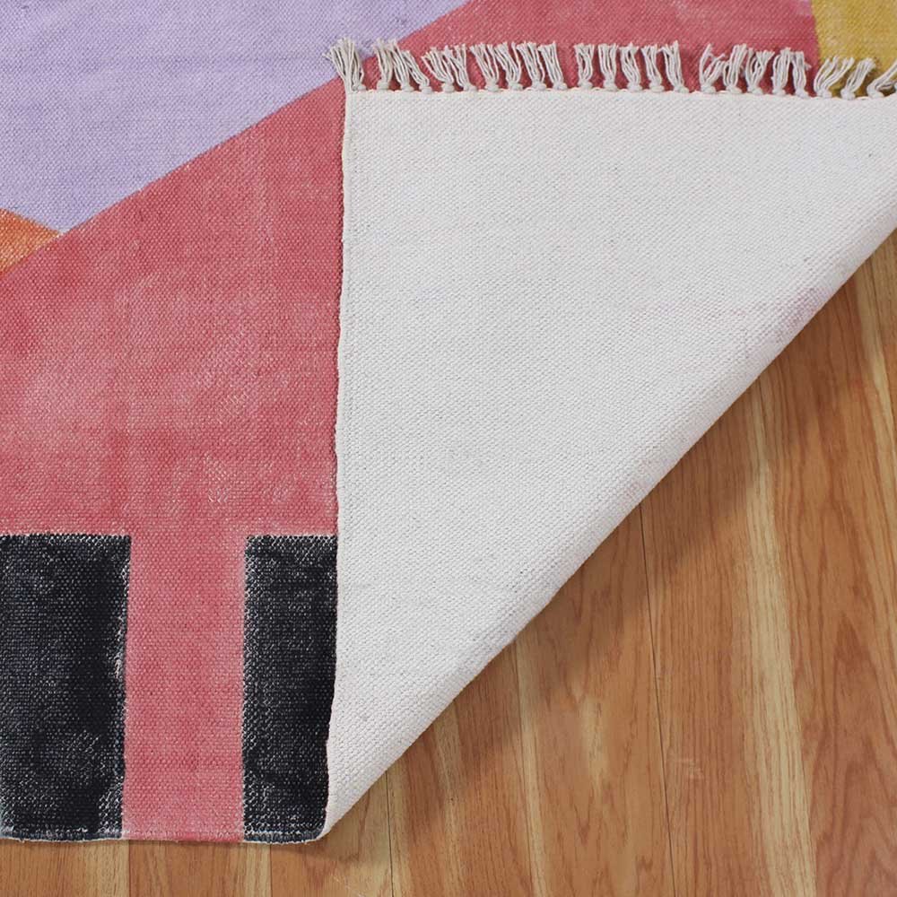 This is a beautiful handmade Cotton kilim rug weaved on Indian looms stamped with natural vegetable-dyes using hand-made wooden blocks achieving the perfection of block printing art of Jaipur. This is best suitable for your home office entrance, bedroom, living room, kids room, dining room, kitchen,outdoor patio, terrace, beach and garden.